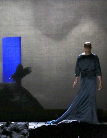 L'action, concentrée tout autour de la petite fosse d'orchestre, s'ouvre sur l'espace de l'arrière-scène, à certains moments. C'est d'ailleurs à ce dispositif que l'on doit les plus belles visions, lorsque de véritables rapaces traversent la scène.