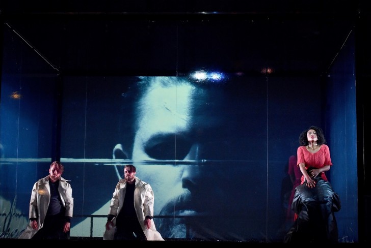 Présents au cours des deux parties de la soirée, certains chanteurs réalisent la prouesse de troquer l'allemand pour l'italien. La Déjanira de la soprano Kelebogile Besong peine dans un registre aigu trop souvent strident et émacié. Le rôle de Giorgetta la trouve en meilleures dispositions, mais la ligne manque de cette onctuosité qui fait le secret du rôle. La voix pleine et grave de Ilya Silchukov incarne à merveille la nostalgie douloureuse de l'amant d'hier et de Michele. La basse Karhaber Shavidze profite d'un rôle de Mari plus développé que le fugace Talpa dans Il Tabarro tandis que Florian Cafiero réalise des prouesses dans l'Amant de demain et le rôle de Tanca. Mystérieuse Voix du lac et anonyme Amoureuse, Khatouna Gadelia déroule ses aigus déliés et très souples. Till Fechner ne force pas son talent en Vieux Pêcheur tandis que Paul Schweinester est un éclatant jeune homme et Kamelia Kader une Frugola sensible et discrète. Calaf en janvier dernier et à présent Luigi, Rudy Park emporte l'adhésion grâce à une voix tonnante et touchante.