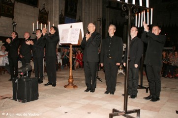 Le soir, l'ensemble Vox Cantoris de Jean-Christophe Candau propose dans l'église priorale Saint-Pierre, reconstruite au XVIIe siècle, les Solennités de l'Assomption de la Bienheureuse Vierge Marie composées pour la cathédrale de Mexico, consacrée en 1667 sous le vocable de l'Assomption. Pendant deux ans, le chef de chœur s'est plongé dans les archives musicales conservées à la cathédrale et au musée Tepotzotlan, dont un livre contient les messes de 4 à 8 voix du compositeur Eduardo Duarte Lobo, très apprécié des maîtres de chapelle du XVIIe siècle. Sa musique rayonnait sur toute l'Europe et le Nouveau monde. La Missa Beata Virgine parodie la messe Cum Jubilo chantée aux solennités de la Vierge. Cette polyphonie complexe est interprétée autour du lutrin par le chœur a cappella de huit chantres, tandis que Frédéric Muñoz exécute à l'orgue les versets alternés pour le Kyrie, ainsi que le Beata Viscera de Cabezon pour l'offertoire. Comme l'usage le commandait à l'époque, les autres sections de la messe alternent entre plain chant et la riche polyphonie.