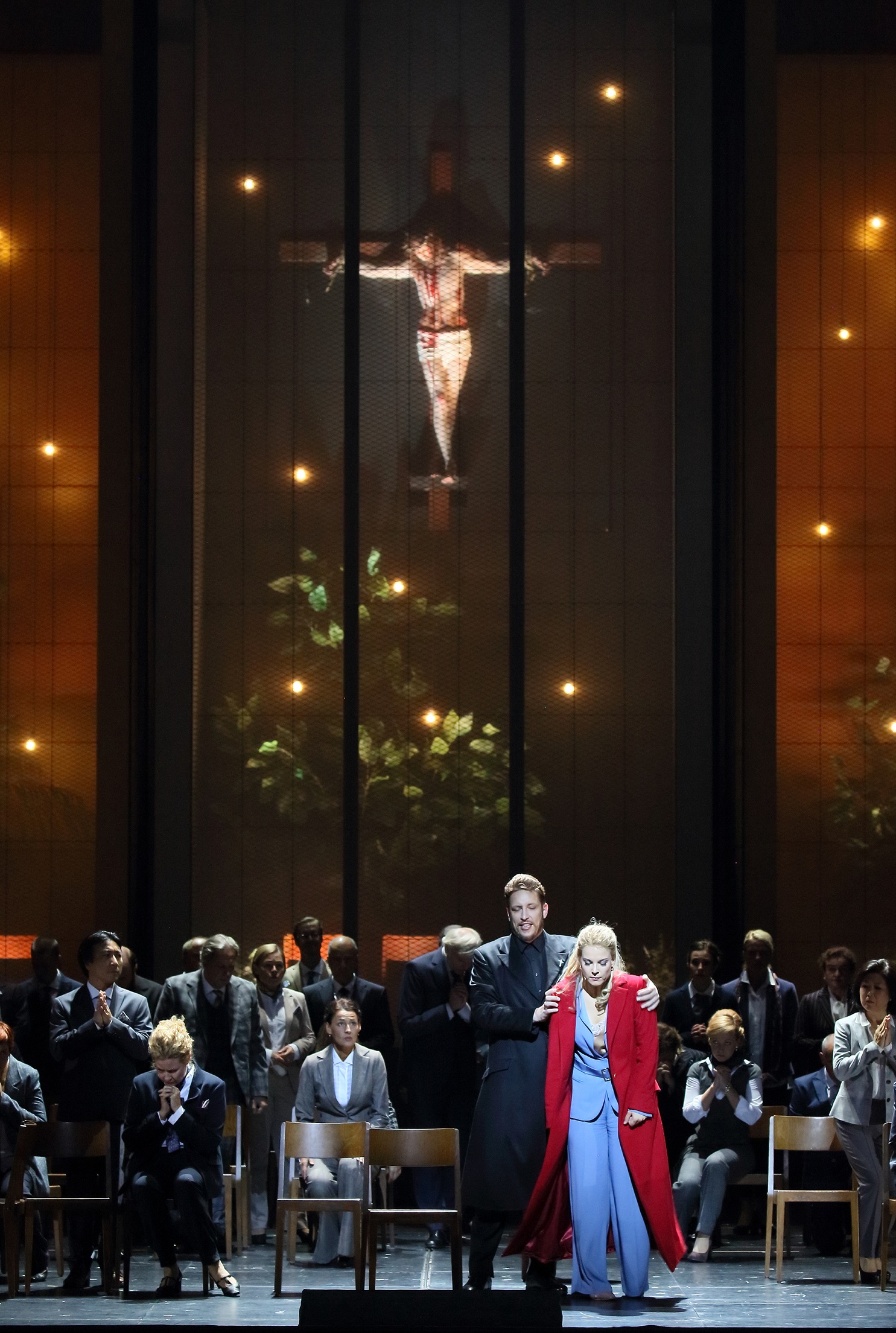 Reste la musique, donc, même s'il est difficile avec une version scénique de s'abstraire de l'action. Le maître d'œuvre Karel Mark Chichon convainc presque entièrement par le soin qu'il prend à souligner toutes les couleurs, souvent sombres, qu'il trouve dans la partition ; ce n'est pas seulement qu'il soutient avec soin les chanteurs, mais il croit visiblement à la noblesse de cette musique. Ce qui arrive dans le final de certains actes, le grand final du deuxième acte notamment, mais aussi les dernières mesures de l'œuvre, est dans ces conditions absolument incompréhensible : soudain, la noblesse fait place aux décibels, les percussions s'en donnent à cœur joie, et les assauts de pompiérisme semblent n'avoir cure des efforts que font chanteurs et chœur pour suivre l'orchestre.