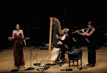 C'est avec la voix fraîche et délicate de Raquel Camarinha que débute ce Grand Soir. Aux côtés de Sophie Cherrier (flûtes) et Frédérique Cambreling (harpe), la chanteuse interprète les Federico's little songs for Children de l'Américain George Crumb : sept chansons délicieuses sur les poèmes de Federico García Lorca – Canciones para niños – auxquelles le compositeur donne des titres originaux. Le chant épuré que soulignent et prolongent les deux instruments rappelle la manière ciselée d'un Kurtág. Crumb affine les sonorités, du piccolo à la flûte basse, et diversifie l'écriture vocale, de la simple cantillation aux éclats de voix en passant par le chuchotement ou le parlé-chanté plus théâtral. La diction de Raquel Camarinha est toujours claire, les aigus agiles et le médium magnifiquement timbré. Epaulée par ses deux partenaires, elle enchante chacune des miniatures.