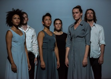 Un homme a été empoisonné. Un poison qui agit lentement mais inexorablement. Avant de mourir, il se rend à la police criminelle pour témoigner de la traque qu’il a menée afin d’identifier ses assassins. Sur cette trame de polar, celui de D.O.A, un classique du film noir américain signé Rudolph Maté, la chorégraphe australienne Lucy Guérin propose un spectacle stylisé et savant. En regard du film, projeté au fond de la salle, derrière les spectateurs et en hauteur sur les côtés, elle met en scène ses six danseurs vêtus de chemise blanche et pantalon sobre pour les hommes, robes dans toutes les nuances de gris pour les femmes.