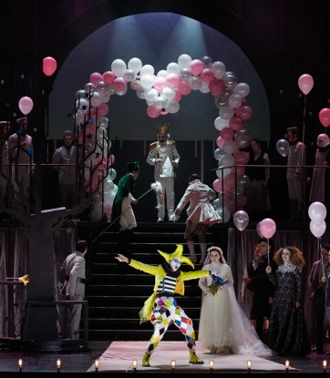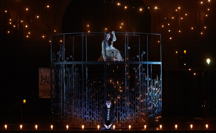 Malgré son peu d'expérience à l'opéra, certainement plus à l'aise pour mettre en avant le talent de Musset (pas de Paul, mais d'Alfred !) qui transpire dans un livret remanié par ses soins, Thomas Jolly paraît avoir tout cerné de la démarche singulière d'Offenbach. De l'ombre à la lumière, le parcours initiatique du jeune Fantasio tout comme l'intrigue de cet opéra, sont sublimés par le regard juste de l'artiste. L'espace est structuré par des éléments mobiles, déplacés par des techniciens déguisés en grooms macabres, qui allient judicieusement les différentes scènes de l'œuvre et donnent du mouvement et des possibilités scéniques enrichissantes, notamment lors de la visite d'Elsbeth dans la prison de Fantasio où les barreaux de la geôle tournent tels un manège pour enfants. Ne voir seulement que l'univers fantastique des Noces funèbres d'un célèbre cinéaste américain à travers les sublimes costumes de Sylvie Dequest de couleurs sombres, les teints blafards des protagonistes et la robe blanche d'Elsbeth tricotée par les élèves de l'école de la Maille, ce serait passer à côté de la réflexion minutieuse de l'équipe artistique et de sa contextualisation historique de l'œuvre. Thomas Jolly nous avait d'ailleurs divulgué dans un récent entretien, les clefs de lecture de son travail et de sa vision toute personnelle de Fantasio.