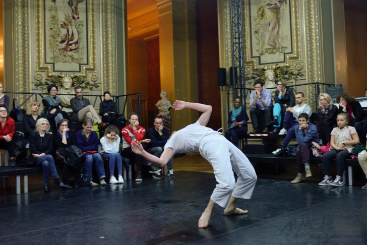Les 120 personnes serrées dans l'espace quadri-frontal de la Rotonde du Glacier de l'Opéra Garnier ont le sentiment de vivre un moment exceptionnel… et potentiellement dangereux ! 24 ans après sa création en 1993 à la Villa Gillet à Lyon, Dimitri Chamblas et Boris Charmatz se mesurent à nouveau dans À bras-le-corps, le duo brut et fondateur qui les propulsa du monde des danseurs à celui de la création chorégraphique.