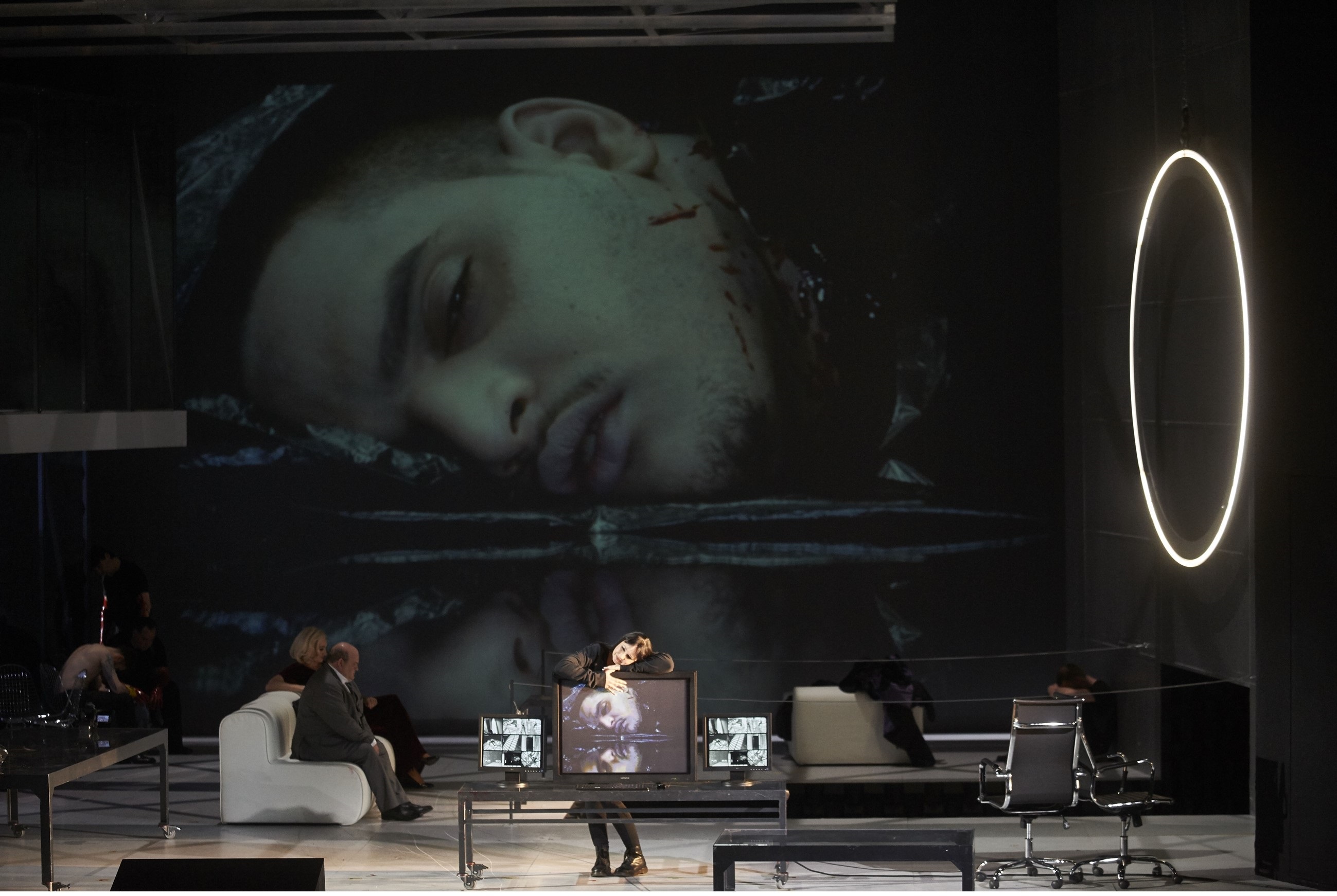 Idéologie de la (vidéo)surveillance, Daech, crise des réfugiés, usage de la torture dans les geôles américaines, tyrannie des médias : ce ne sont que quelques-uns des grands thèmes contemporains que Kirill Serebrennikov met en scène dans sa Salomé, où il n'oublie pas non plus toutes les perversions de la famille la plus dysfonctionnelle de l'histoire de l'opéra. C'est beaucoup, et il faudrait un virtuose pour construire à partir de toutes ces pistes un spectacle cohérent à la hauteur de ses promesses. Comme pour son Barbier de Séville créé à l'automne dernier à la Komische Oper, Serebrennikov se contente hélas d'un vernis contemporain d'où toute ambiguïté est bannie. Il n'a pas beaucoup plus à dire sur ces thèmes que ce qu'en disent les gros titres de la presse à sensation : à force d'accumuler les thèmes et de les traiter de la manière la plus sensationnaliste possible, il tue aussi bien l'émotion que la réflexion et réduit singulièrement la place du théâtre dans ce spectacle, qui ne prend que parcimonieusement appui sur l'opéra qu'il met en scène. Peu importe que l'opéra insiste sur la fascination qu'exerce Jochanaan sur tous ceux qui l'approchent : pendant tout son dialogue avec Salomé, les gardes du palais le torturent avec tout le sadisme possible, façon Abu Ghraïb – le chanteur est relégué en bord de scène, tandis qu'un acteur prend les coups pour lui.