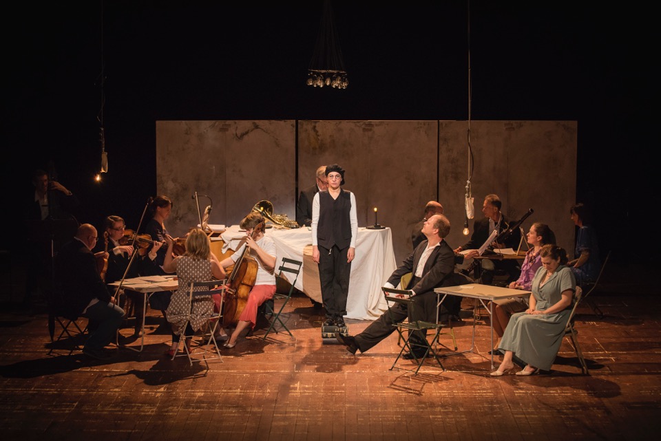 Ici, François-Benoît Hoffman nous entraîne dans de la pure comédie où les ariettes simples à retenir, se mêlent à une succession de quiproquos plus loufoques les uns que les autres. Mais il faut bien avouer que l'intrigue reste toutefois bien trop simpliste pour tenir en haleine le spectateur d'aujourd'hui, constat que le metteur en scène Juan Kruz Diaz de Garaio Esnaola semble combler en faisant participer de manière très active les musiciens en première partie de soirée autour d'une table de festin ou sur une terrasse de café (Patricia Bonnefoy au violon tient même le rôle de Frontin), pour ensuite faire déplacer constamment par les protagonistes des panneaux de bois sur des supports peu stables, faits de bric et de broc dont les miroirs éblouissent certaines personnes de l'assistance, et cela sans que l'on ne comprenne vraiment ce que leur disposition évoque, excluant même parfois le spectateur en installant régulièrement un mur entre le plateau et la salle, alors que les musiciens sont sagement disposés tel un opéra en version de concert. Comme nous l'expliquaient dans un récent entretien les deux directrices musicales de la compagnie, Pauline Warnier et Hélène Clerc-Murgier, chaque production est réfléchie pour pouvoir s'exporter dans des endroits inédits. Mais il reste étonnant qu'une fois que la troupe se retrouve dans un vrai théâtre, les moyens offerts par la salle soient sous-exploités. Ainsi, à plusieurs reprises, les interprètes se retrouvent dans la pénombre faute de poursuite.