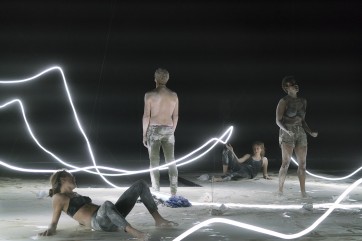Ce n'est qu'à la fin du spectacle que la voix off redevient audible, dévoilant les directions qu'elle indiquait aux danseurs et levant le mystère de ce spectacle à la fois charnel et conceptuel.