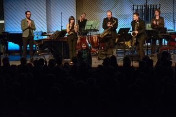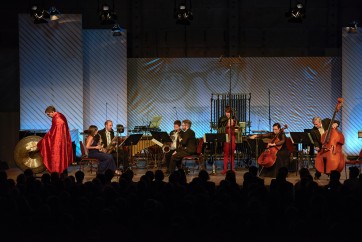 Le concert d'ouverture débute justement par l'une de ses pièces, In Erwartung, pour quatuor de saxophones et sept percussions. La pièce débute par des accords clairs aux percussions, puis par des réponses en notes piquées des saxophonistes, placés à gauche et à droite du parterre avant de revenir sur scène. Les musiciens du Raschèr Saxophone Quartet utilisent pour l'occasion toute une palette de saxophones, du sopranino au baryton, avec une rigueur impeccable pour s'accorder aux régulières cassures de la partition et aux percussions diverses des musiciens du Slagwerk Den Haag.