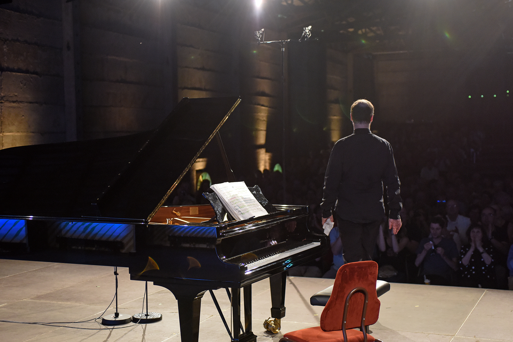 Viktoria Postnikova aurait pu intervenir aussi le lendemain pour jouer les Préludes de Chostakovitch, mais elle a laissé la place à l'un des plus grands interprètes actuels de ces pièces, dont tout passionné connaît l'enregistrement pour Harmonia Mundi réalisé entre mai 2008 et mars 2009, celui du pianiste Alexander Melnikov . Au premier concert, le samedi midi, l'artiste arrive dans la grange du festival surchauffée en montrant des signes extérieurs de fatigue. Il initie un premier Prélude froid et distant, interrompu après quelques secondes seulement par une sonnerie de téléphone. Étonnamment, le pianiste va lui aussi s'interrompre, jouer au piano la sonnerie, puis dire au public « Noch einmal » (Encore une fois). Il réintroduit le premier Prélude, mais à notre plus grande surprise l'interruption l'a concentré, et le son s'ouvre alors immédiatement pour trouver tout de suite plus de sensibilité. Les arpèges du deuxième prélude se déploient alors avec douceur et retenue dans une gestion du toucher toujours si spécifique à l'école russe. Les fugues rappellent évidemment Bach, comme le jouait Richter. Au Prélude n°4, l'Andante finit de convaincre le public concentré d'une salle d'environ cinq cents chaises presque toutes occupées.
