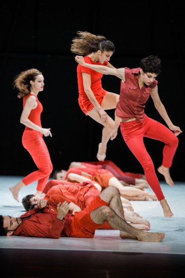 Murmuration, la création de Rachid Ouramdane en deuxième partie, est beaucoup plus chaleureuse avec ses lumières et ses costumes rouges. Elle s'appuie, tout comme Record of ancient things, sur la masse du groupe de danseurs. En articulant marches, courses, sauts et déboulés, le chorégraphe entraîne les danseurs du Ballet de Lorraine dans une transe intense proche de l'épuisement. Sans être véritablement écrit – au sens de l'écriture chorégraphique – le mouvement répète des motifs qui s'entrelacent dans une vaste fresque mouvante. Toujours mobiles, les danseurs sont attentifs aux autres, dans l'évitement comme dans le rapprochement. Leur « être ensemble » véhicule un message plus généreux et plus humaniste que la pièce présentée en première partie de soirée.