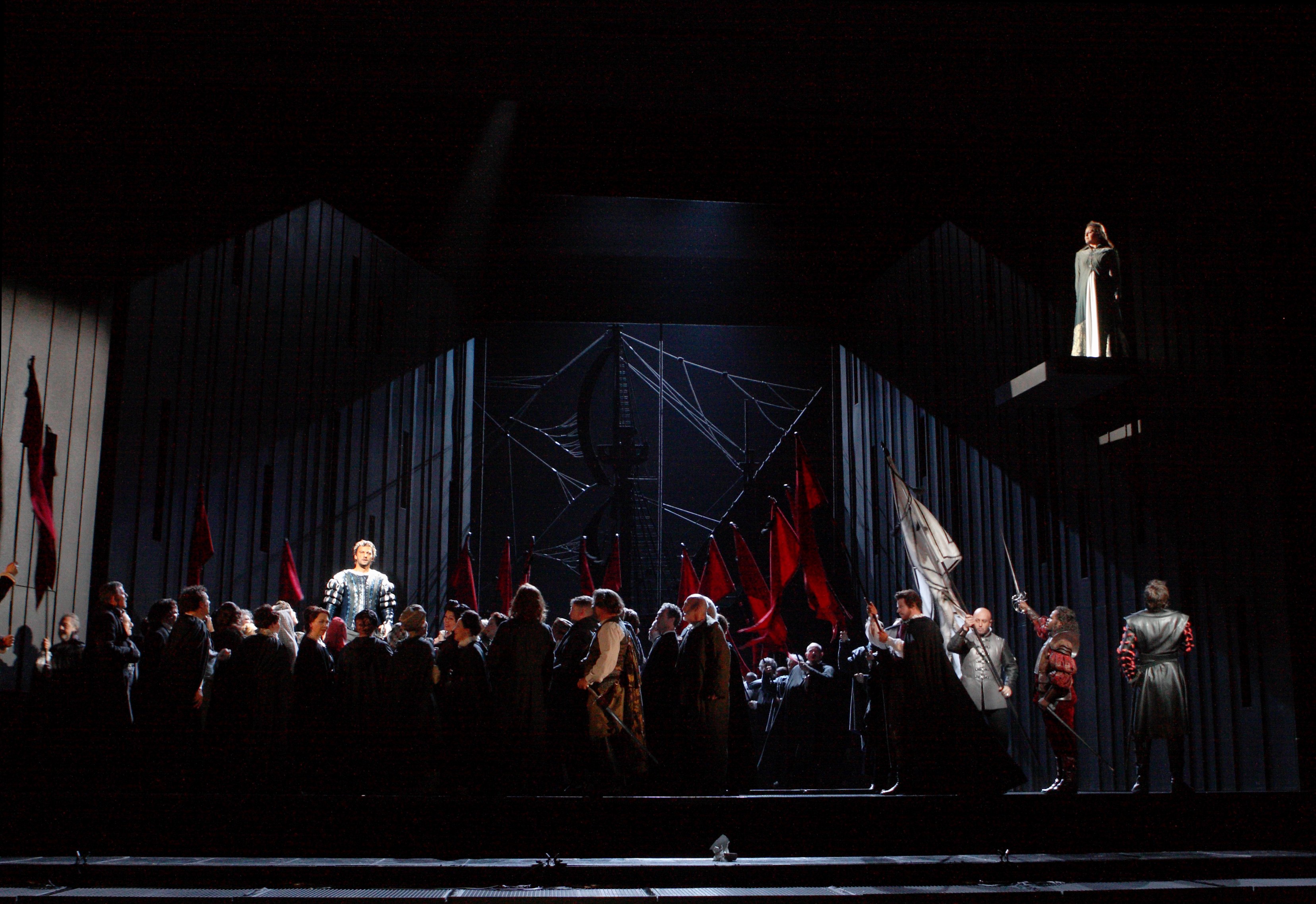 Pour renouveler une précédente production vieille de trente ans, une nouvelle mise en scène a été confiée à Keith Warner, dont les mauvaises langues diront que les murs latéraux et le fond de scène souvent clos par une porte servent de cornet pour aider au maximum à la projection des voix. Pour le reste et en dehors de l'énergie des combats déjà citée, on ne retrouve que du très classique avec un chant presque toujours en avant-scène face au public, pour une dramaturgie relativement simple dans des décors vaguement modernes et des costumes traditionnels. La qualité de fabrication montre cependant qu'un budget conséquent a été investi pour créer un écrin digne de ce nom à une prise de rôle d'une telle importance.