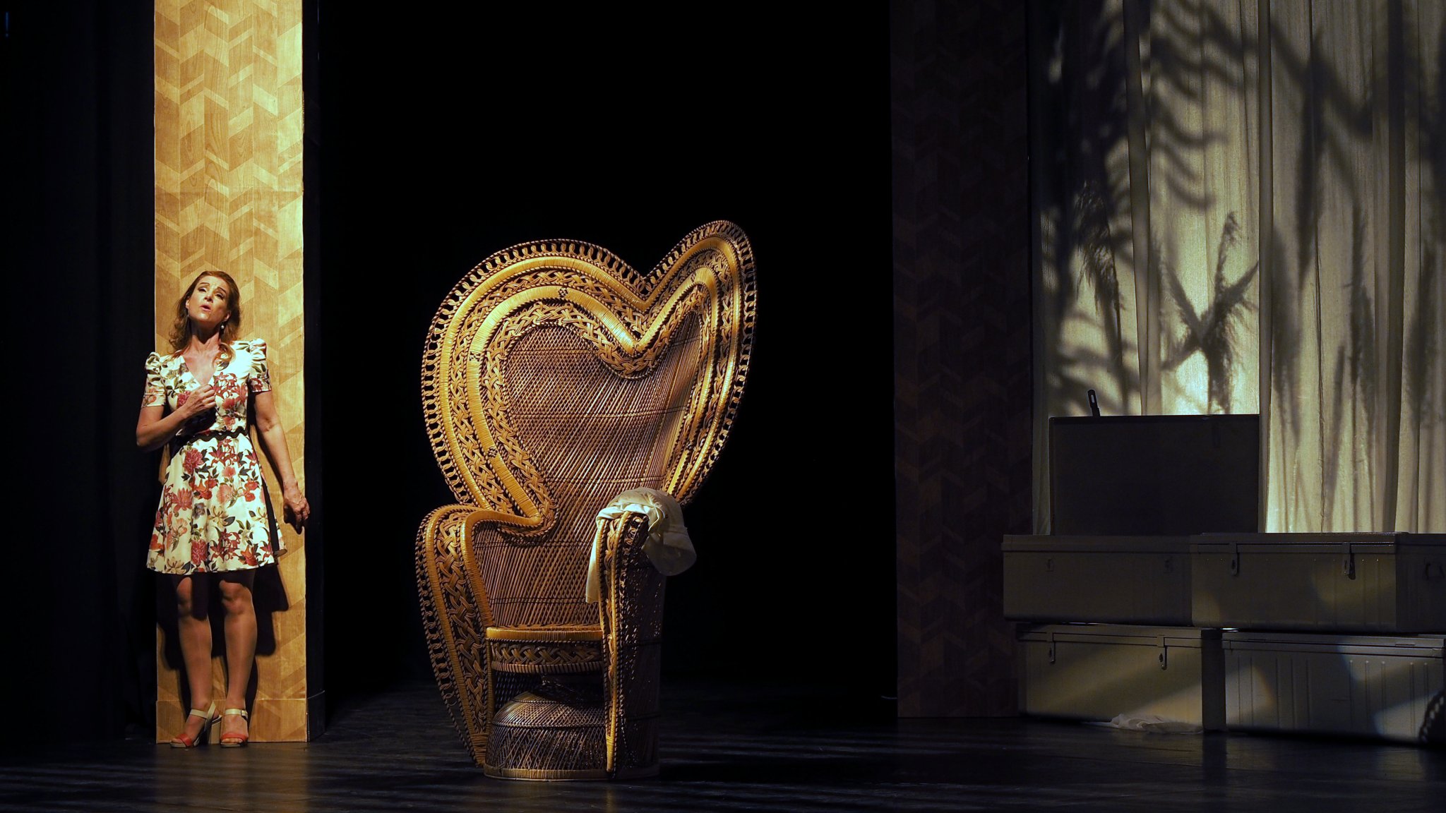 « Pour que l'opéra reste un art populaire ». Défendue par de nombreuses institutions, la démocratisation de ce genre reste en pratique difficile à mettre en œuvre : des tarifs abordables (voire modestes, comme ici) ne sont pas le seul vecteur pour faire venir un public éclectique. Dans ce bel espace culturel Roger Hanin doté de tous les équipements nécessaires pour un spectacle de belle facture, force est de constater que les 450 spectateurs du jour viennent de tous les horizons. Les trentenaires et leurs jeunes enfants côtoient les habitants de la région de tous âges, comme les touristes venus profiter du soleil de la côte. Dans une ambiance bien plus détendue que dans de nombreuses maisons d'opéra et autres festivals, tout est mis en œuvre pour que chacun se sente le bienvenu : une interaction avec le public dès l'arrivée grâce à des choristes en costumes qui vous accueillent ou d'autres lovés sur certains canapés, comme si nous étions déjà à la fête organisée par Violetta ; le vigile qui surveille le rideau entre les changements de plateau et qui brise le quatrième mur en inspectant le nouvel intérieur dans lequel va se dérouler le drame ; des sous-titrages pour toutes les représentations qui en ont besoin (le récital de Pierre-Yves Binard autour des Dichterliebe la veille par exemple) ; une conférence avant le début de chaque spectacle… Mais l'Opéra des Landes va plus loin avec son chœur de chanteurs amateurs créé spécifiquement pour l'occasion. Douze répétitions auront suffi pour que dans un bel équilibre des pupitres et une agréable homogénéité d'ensemble, chaque choriste puisse déployer un engagement vocal et une théâtralité convaincants. Même si nous regrettons quelques costumes de bohémiennes un peu grossiers – sentiment rééquilibré grâce aux premières tenues de soirées et aux manteaux de fourrures qui donnent une élégante vision du groupe au premier acte -, et plusieurs décalages avec l'orchestre en raison du positionnement du chef sur le côté de la scène et d'une intervention en coulisse occultant la visibilité sur la direction – des failles que nous avions déjà rencontré avec des chœurs professionnels évoluant dans les mêmes conditions -, le chœur assure une performance tout à fait honorable tout au long de la soirée. Les dix musiciens de l'orchestre, sous la baguette de Philippe Forget, défendent ardemment la théâtralité de la musique de Verdi même si l'effectif réduit ne permet que d'entrevoir les contrastes de la partition entre déferlante orchestrale et instants de plénitude.
