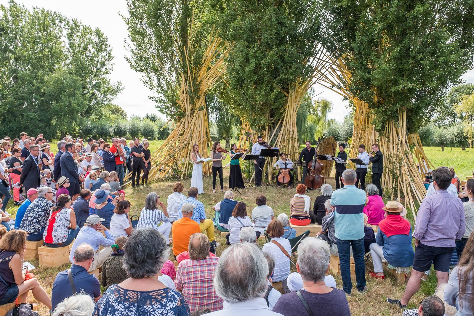 Durant une semaine, le célèbre chef d'orchestre spécialiste de musique baroque, ouvre les portes de sa résidence à Thiré pour faire apprécier à chacun son travail minutieux et élégant autour de l'art des jardins. Sur près de deux hectares, les visiteurs peuvent déambuler en toute liberté dans de nombreux espaces aussi exceptionnels que variés. Notre promenade débute au mur des cyclopes, un bosquet qui abrite quatre étudiants de la prestigieuse Juilliard School de New York pour la Suite en la mineur TWV 43, programme intitulé « In the Garden with Telemann. » Le ton est ainsi donné : dans la douceur de ce bel après-midi, la diversité des affects et des styles de la musique baroque, accompagnée par le bruissement des feuilles et le bruit du cours d'eau, sont portées par de jeunes artistes inspirés. Alors que le théâtre de verdure en chinoiseries proche de l'univers imaginaire d'Alice au pays des merveilles accueille « Haydn dans son jardin anglais » avec London trio Hob. IV:3 interprété par Serge Saitta (flûte traversière), Emmanuel Resche (violon) et Cyril Poulet (violoncelle) des Arts Florissants, l'apothéose de l'après-midi est atteint avec les extraits du Septième Livre des madrigaux de Monteverdi, où Cyril Auvity et Paul Agnew révèlent toutes les couleurs et les intentions vocales de ces duos pour ténors, soutenus par William Christie au clavecin et Myriam Rignol, violiste depuis quelques années aux Arts Florissants.