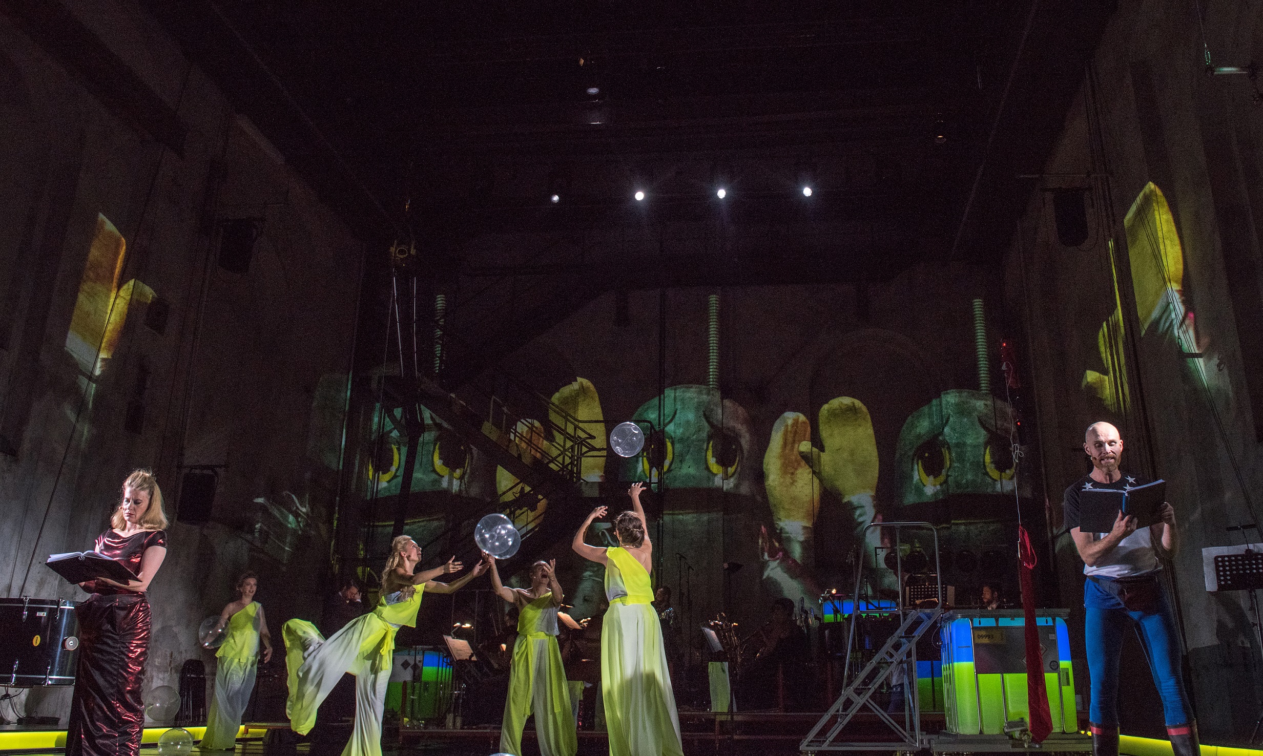 Et la musique ? Née conjointement avec le spectacle de Stemann et, au moins en partie (l'année 2017 du titre), avec le texte, la musique de Philippe Manoury est le parent pauvre du spectacle. Réduite souvent à la fonction de bruit de fond, masquée par l'agitation scénique, elle ne sort que rarement de la banalité, sans doute parce que son écriture comme work in progress borne les possibilités du compositeur. Les chanteurs parlent beaucoup ; quand ils chantent, sans qu'on comprenne d'ailleurs pourquoi ils ont besoin de chanter, l'écriture vocale paraît étrangement désuète, jolie, expressive et sans intérêt. Manoury parle aussi, en français, pour expliquer sa démarche : le texte est plat, platement débité, et cet obligatoire moment de métathéâtralité ne va pas au-delà du gadget.