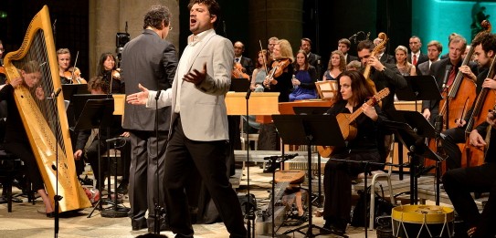 Ambronay. Abbatiale. 15-IX-2017 : Claudio Monteverdi (1567-1643) : L’Orfeo. Mariana Flores (soprano), Valerio Contaldo (ténor). Chœur de Chambre de Namur, Cappella Mediterranea, direction : Leonardo García Alarcón.