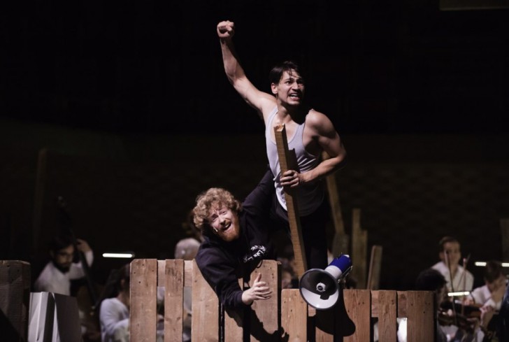 Fruit d'un travail titanesque et d'une intense réflexion (Séverine Chavrier s'est entourée de pas moins de trois conseillers historiques et littéraires !), la mise en scène de l'actuelle directrice du Centre Dramatique National d'Orléans porte une vision radicale en choisissant de ne maintenir que la moelle épinière de la pièce de théâtre initiale avec pour particularité quatre comédiens au lieu d'un unique récitant. L'impact et la force du texte s'affirment de façon plus brute, plus immédiate. À la limite d'un ciné-concert, les mouvements, la vie, la rébellion juvénile des cinq protagonistes se diffusent en vidéo, alors que les comédiens en chair et en os sont étonnamment statiques sur scène, au milieu de barricades, de tôles et de pneus. Ne pas rester dans un cadre : cela semble être le fil rouge de cette démarche théâtrale. Le plateau de jeu n'a plus de limites, à l'image de la fuite de Klara qui débute sur le plateau et se poursuit sur écran géant dans les couloirs de La Seine Musicale, ouvrant d'infinies possibilités pour un régulier hors-scène exaltant. Le jeu des quatre comédiens est d'une audacieuse précision, basculant également entre celui du théâtre et du cinéma, particulièrement par le biais de nombreux regards intenses filmés en direct. Complexe et touffu, l'effet est tel que même lors des saluts, on se sent encore bien trop bousculé pour véritablement décrocher.