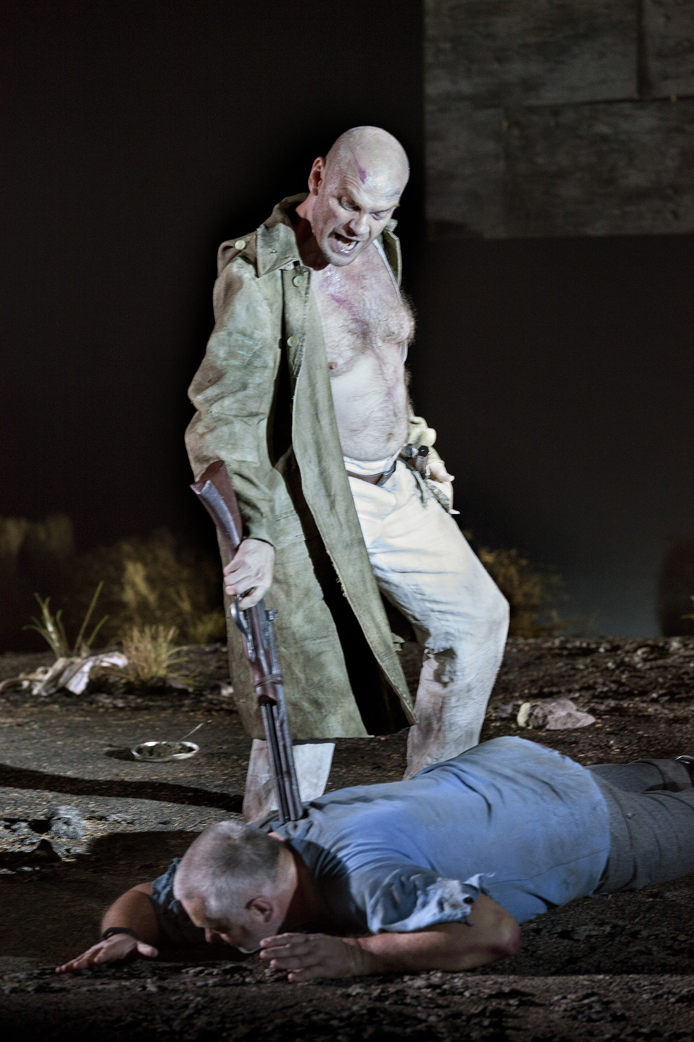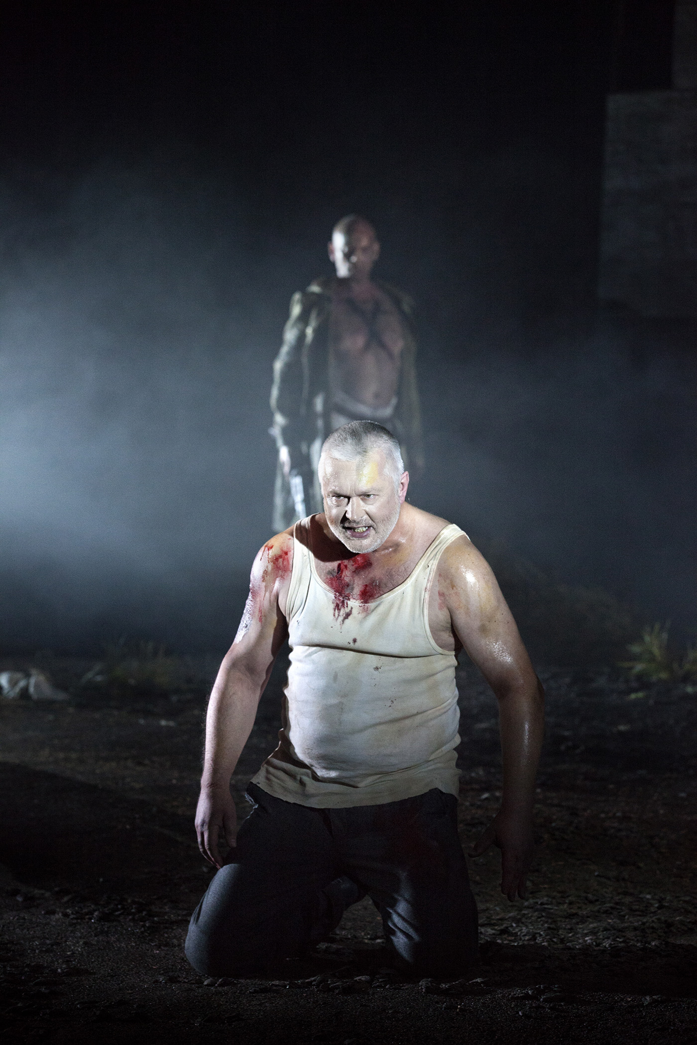 Au contraire, la musique est portée par une superbe équipe, à commencer par le rôle-titre, Heliane revenant à la remarquable soprano Aušrinė Stundytė. La voix montre un certain vibrato, mais la couleur du médium et la beauté des graves comme des aigus développent magnifiquement le personnage, en plus d'un charisme scénique évident. L'étranger qui lui fait face est un ténor wagnérien vaillant, Ian Storey, agréable de timbre et à l'aise sur toute la tessiture du rôle. Le souverain de Tómas Tómasson passionne lui aussi. Torse-nu et crâne rasé, il ressemble à s'y méprendre à Bo Skovhus et n'a rien à lui envier en termes de jeu d'acteur tant il convainc aujourd'hui sur la scène des Flandres. Le portier présente une superbe basse aux graves profonds, Markus Suihkonen, tandis que Natascha Petrinsky campe un messager très intéressant dans le bas-médium, l'écriture de sa partition rappelant à plusieurs instants celle de Klytemnestra.