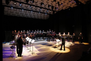 Actuel compositeur en résidence, Philippe Hersant a composé, pour la finale du Concours, Le jardin étoilé, mais reprend quelques jours après Landschaft mit Argonauten, conçu à Avignon en 1991 comme musique de scène d'un texte de Heiner Müller. Les deux pièces sont aussi dissemblables que possible : le jardin extraordinaire pour le grand orchestre de la finale, tout de sortilège sonore, fait le grand écart avec une pièce d'une veine plus barbare (sujet oblige : Müller y dénonçait le thème de la colonisation), confiée à l'accompagnement, le plus souvent rageur, de deux quatuors de trombones. L'excellent Chœur Contre z'ut, dirigé avec l'imparable précision qui s'impose par Alain Lyet, l'alto profond de Françoise Rebaud, le lien glaçant du récitant Paul-Alexandre Dubois, éructent la sombre poésie incantatoire de Müller. Regrettons toutefois qu'un travail pédagogique en amont, ou ne serait-ce qu'un simple feuillet de l'intégralité du texte, ne soient pas venus compléter la courte introduction en chair et en os du compositeur, pour une pièce qui est à son corpus ce que Le Sacre du Printemps est à L'Oiseau de feu, Hersant lui-même déclarant en off qu'il ne composerait plus ainsi.