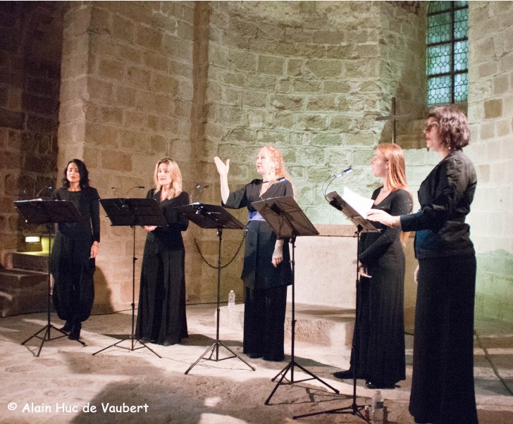 Dimanche après-midi, dans la crypte Saint-Martin du Mont Saint-Michel, c'est presque un tour de force qu'ont réalisé les cinq chanteuses de l'ensemble De Caelis en parcourant de façon imagée et très pédagogique un millénaire de musique médiévale en l'espace de quarante cinq minutes. De l'unification carolingienne par le plain chant au IXe siècle, jusqu'à l'Ars nova au XIVe, elles ont illustré de façon très vivante cette époque musicalement extraordinaire et extrêmement inventive. Hormis le talent de ce quintette dirigé par Laurence Brisset, ce survol que quelque sept à huit siècles de musique avec l'apparition de la notation et des techniques aussi diverses que l'unisson, l'hétérophonie, le déchant ou discantus, l'organum et l'École de Notre-Dame, qui rayonne sur l'Europe entière avec la naissance de l'université, les conduits sur des règles homophoniques et homorythmiques, l'invention de la chanson, puis de la forme complexe du motet, donnerait assurément le tournis. Le Codex La Huelgas, Pérotin, Adam de la Halle, Philippe de Vitry, le Kyrie de la Messe de Tournai (la première messe polyphonique de l'histoire) et un grand motet du Codex de Chantilly étaient convoqués pour cette brillante évocation.