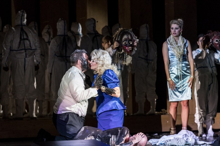 La première partie, à Troie, est la mieux préservée. Calixto Bieito, sans excès d'ambitions interprétatives, livre un travail d'une remarquable clarté, qui illustre la solitude de Cassandre face au poids du collectif et brouille les frontières des identités opposées. C'est sans doute moins éclairant que l'inoubliable version de Herbert Wernicke (Salzbourg 2002), mais tellement plus que le vulgaire gigantisme de David McVicar (Londres 2012) ! Après l'entracte, un autre spectacle commence, moins ambitieux dans l'esthétique visuelle, plus ambitieux dans l'interprétation. Il y est question de guerre, de domination, de pillage économique : pourquoi pas, la guerre par Troyens et Carthaginois à la « troupe immonde d'Africains » étant bel et bien un moteur déterminant du livret, mais c'est tout de même un peu court. Les huées un peu apathiques ont sans doute sanctionné, comme d'habitude, le vernis contemporain du spectacle et la violence que Bieito, enfreignant un absurde tabou, n'hésite pas à montrer ; mais le problème de cette seconde partie est ailleurs : outre un décor plus pataud que monumental, l'angle d'attaque choisi laisse de côté beaucoup des questions essentielles qu'ouvrent cette œuvre – pensons seulement au thème omniprésent des identités collectives, de ces patries qu'on traîne avec soi, fardeau et mythe fondateur (la scène des deux sentinelles marries de devoir quitter Carthage, naturellement coupée, n'est pas là pour rien !).