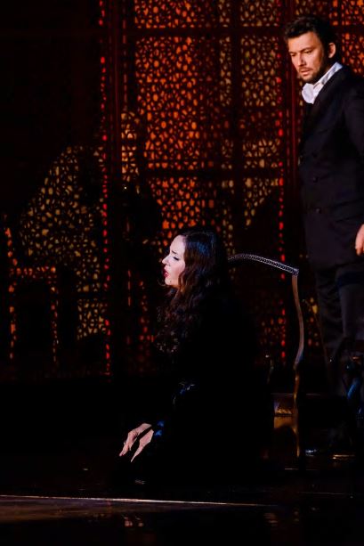 L'objet de son amour, Elisabeth de Valois devenue Reine d'Espagne, est incarnée par une Sonya Yoncheva constante autant dans sa puissance vocale (quelle projection étonnante !) que dans celle de son jeu. On le sait, la soprano excelle dans les compositions dramatiques : son Elisabeth perpétuellement blessée, démontre une dignité flamboyante matérialisée par une voix large et des nuances subtiles (magiques piani empreints de douleur dans son duo d'adieu avec Don Carlos) qui feront oublier des aigus quelque peu métalliques et un vibrato qui se serre un peu au fur et à mesure de la prestation.
