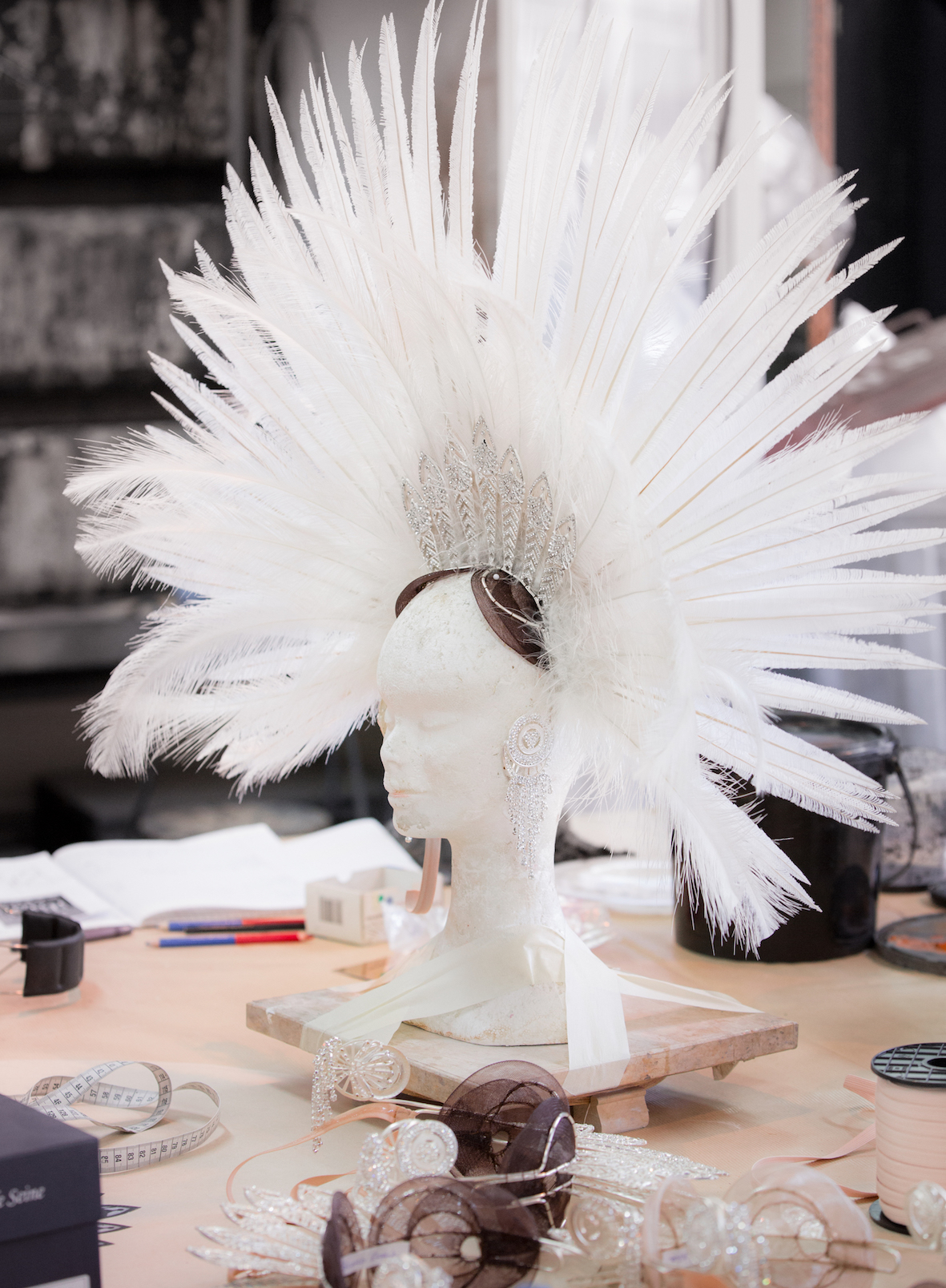 Crédits photographiques : Costume de Francesco Zito pour le rôle d'un oiseau dans Ariodante, de G. F. Haendel. Opéra national de Paris, 2001. Coll. CNCS/ONP © CNCS / Florent Giffard ; Atelier Perruques, Opéra national de Paris, Bastille © E. Bauer – OnP