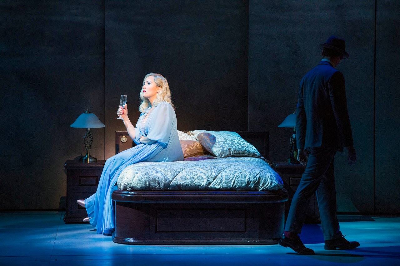 Michael Mayer tente d'adapter sa mise en scène à un livret sans cesse mouvant et sans doute trop respectueux du livre et du film, à l'image de celui de Notorious de Gefors il y a deux ans à Göteborg, déjà d'après Hitchcock. La rapidité des changements de lieux et d'action trouve une solution efficace dans les décors de Julian Crouch, assisté pour les vidéos par le collectif 59 Productions Ltd. Des panneaux coulissent latéralement et verticalement tandis que le mobilier entièrement sur roulettes permet d'être très rapidement ajusté. Il est déplacé par des hommes en costumes trois pièces et chapeaux, à l'image d'artistes de music-hall, parfois utilisés justement dans des chorégraphies pour amplifier certaines situations. La caractérisation des personnages reste cependant bien faible et de même qu'une partie de la musique, la mise en scène reste plus illustrative que démonstrative, sans donner non plus de véritable partie pris sur l'héroïne.