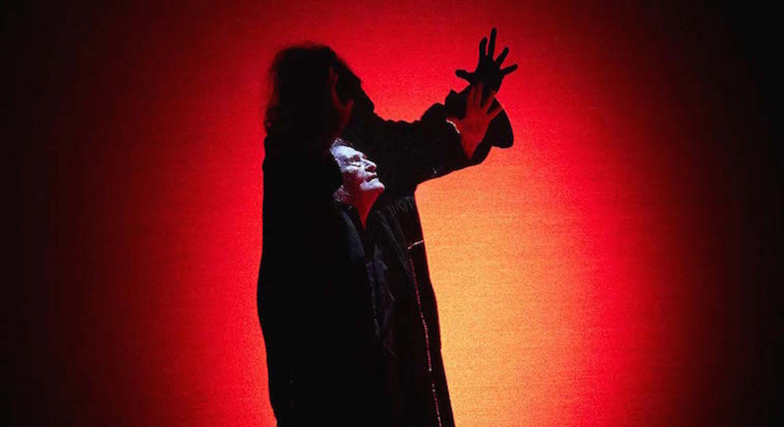 C'est d'emblée la manière abrupte, obsessionnelle et frontale de Pierre Henry qui saisit l'auditeur dans un début chaotique et fort en décibels où l'image instable sur grand écran ajoute au trouble et à l'inconfort dans lequel l'auditeur est plongé. La vidéo projetée sur tous les murs de la salle et le son toujours très réverbéré nous font vite perdre nos repères, embarqués dans cette aventure étrange « d'ubiquité » que Wendling appelle de ses vœux. Défilent sur l'écran des textes, archives, extraits de films répétant à l'infini la pièce de Shakespeare qui se joue dans la tête multiple du personnage resté jusqu'à présent dans le noir. « Silence ! » réclame-t-il au terme de ce prologue musclé et avant son premier monologue (« Je ne connais pas les semblants ») où il répond à la voix off, mystérieuse et sensuelle, d'une Ophélie lointaine (Valérie Philippin). Les quatre « solos », aussi intenses qu'incontournables (le célèbre « To be or not to be » traduit en français) engendrent des instants de théâtre pur et viennent ponctuer, dans un univers silencieux, les diverses séquences de ce drame à haut voltage. Le dernier monologue creusant une fois encore la réflexion métaphysique s'accompagne d'un trompe l'œil saisissant où c'est l'ombre, agrandissant la stature de Serge Merlin, qui semble s'adresser à nous. Autant de métaphores et artifices pour traiter du renversement des réalités à travers cette « mise en abyme hamlétique » selon les termes de Wendling, à laquelle Serge Merlin, très impressionnant, confère tout à la fois la dimension hiératique et l'humanité profonde.