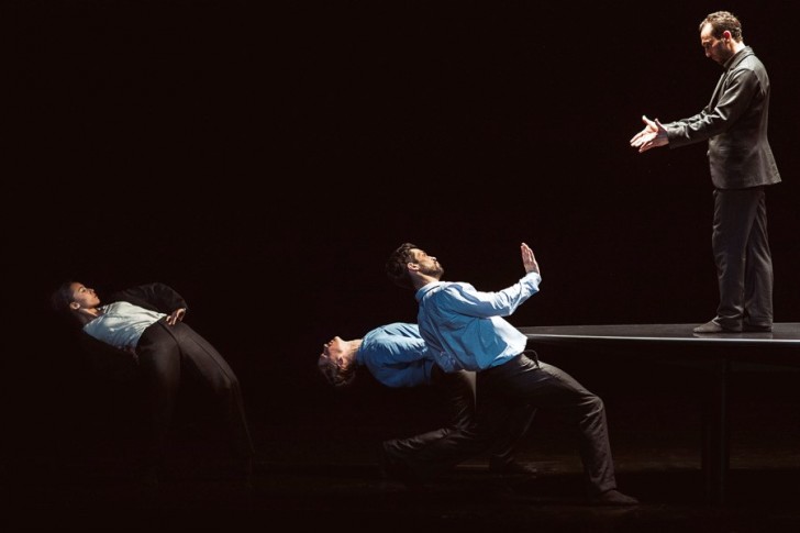 Aux confins de cette première pièce, The Statement (2016) de la Canadienne Crystal Pite, LA chorégraphe phare du moment, est esthétiquement très différente mais d'une sobriété glaçante… et d'une précision inouïe !° Cette pièce n'est pas sans rappeler La Table verte, chef-d'œuvre chorégraphique de Kurt Jooss (1932) qui préfigure, tout en sarcasmes, la montée du nazisme et l'horreur de la guerre. Les politiciens de l'époque deviennent des hommes et femmes d'affaires, en pleine réunion houleuse. Le mouvement, articulé et désarticulé avec minutie, fusionne avec le propos, loquace à souhait : la chorégraphie se transforme en talk-show. Une radioscopie des relations rythmée par le scripte foisonnant de Jonathan Young et les sons futuristes de Owen Belton. La lumière de Tom Visser vient également jouer un rôle primordial dans ces relations professionnelles tendues. Les danseur.se.s sont attirés par un abat-jour démesuré, centré au-dessus d'une immense table rectangulaire, qui monte et descend. Magnétisés par ce faisceau lumineux, ils tournoient autour, s'en échappent de temps à autre, mais leur destin est inéluctable. Le charismatique Roger Van der Poel, à la gestuelle follement incisive, finira ainsi par se faire absorber par la matrice. Une pièce d'une sensationnelle inventivité, poignante de réalisme.