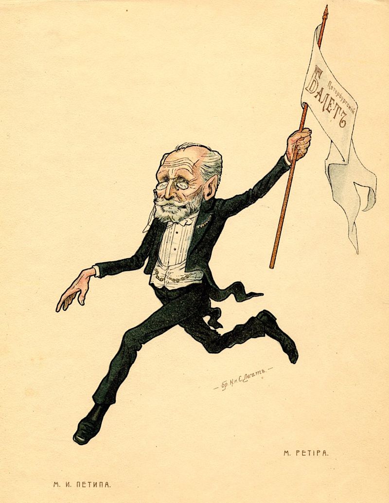 Image libre de droit : Νikolai Gustavovich Legat (1869-1937) et Sergei Gustavovich Legat (1875-1905), »Рускій балетъ въ карикатурахъ », Caricature de Marius Petipa .