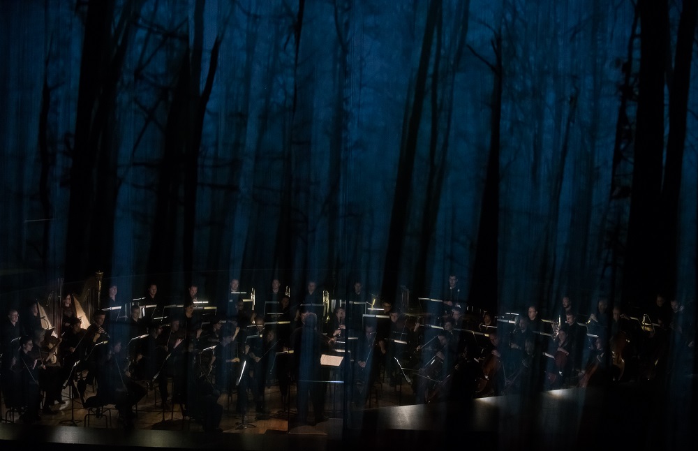 Placer l'orchestre sur scène semblait périlleux. Et pourtant, le rôle narratif et évocateur de l'orchestre debussyste flamboie dans cette disposition qui fait immédiatement partager la vigueur de la direction de et la richesse des couleurs de l', et cela dès l'introduction de la première scène avec un motif de nature modale pour modeler le décor, un motif tonal avec rythmes pointés pour marquer l'entrée du chasseur Golaud, et un motif pentatonique fuyant soulignant l'exotisme mystérieux de la jeune femme qu'il rencontre dans cette forêt. L'orchestre est ainsi au cœur de l'opéra, le théâtre y évoluant tout autour avec cohérence. Défi de taille pour la phalange que de défendre dans cette configuration la version originale de l'œuvre, où les brefs interludes orchestraux mettent sur pièce un étonnant « fondu enchaîné », les scènes découlant organiquement les unes des autres. C'est une réussite : le fatalisme du trombone et du tuba après la fureur de Golaud côtoie la fébrilité orchestrale lors de l'interrogatoire d'un Yniold apeuré par la rugosité de son père, tout comme le lent balancement des altos qui accompagne une Mélisande mourante.