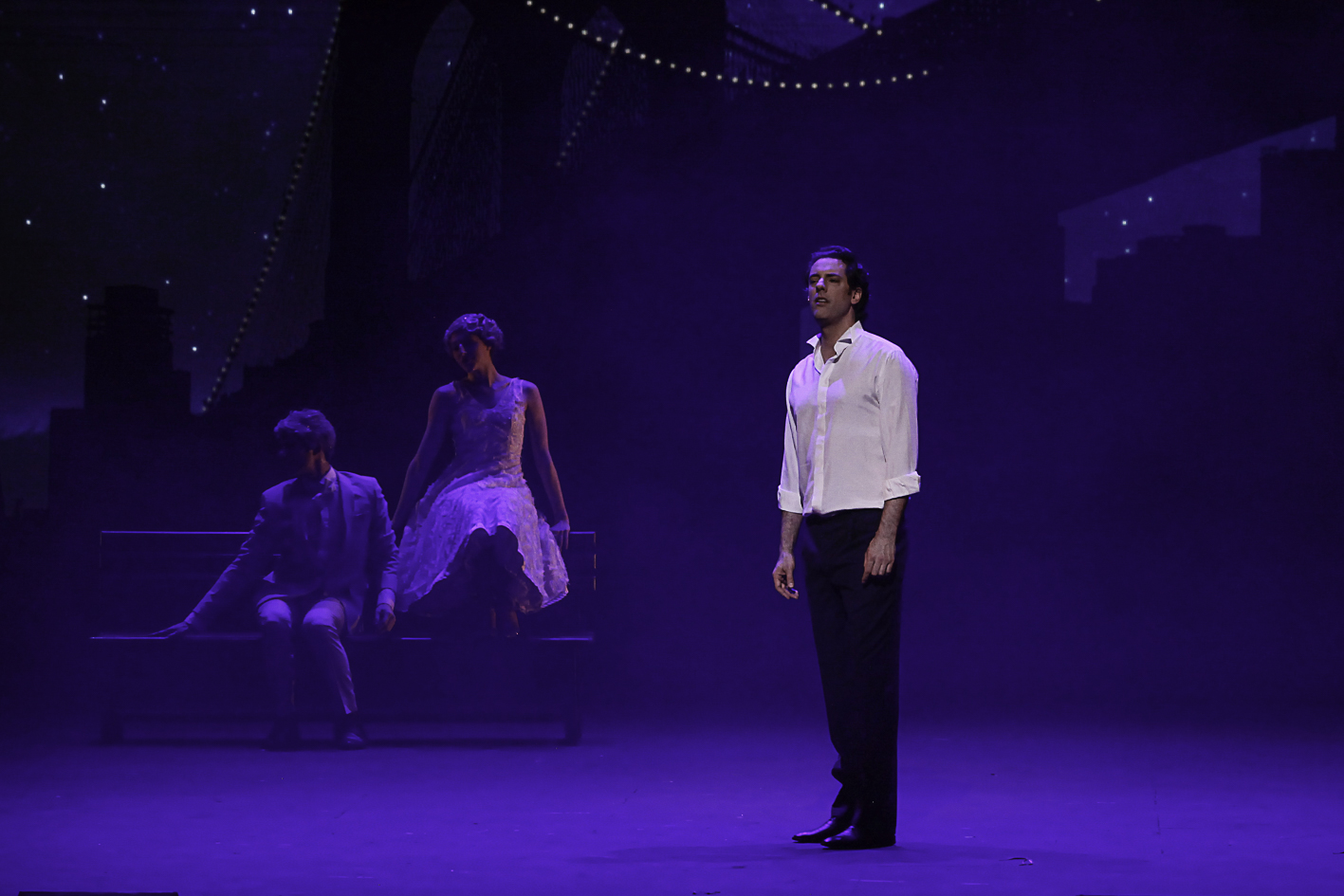 Un peu comme le Manhattan de Woody Allen, auquel le spectacle rend hommage lors d'une très belle scène avec banc sous la brume matinale du Pont de Brooklyn, l'œuvre, créée quatre ans avant West side story (annoncé ici en plus d'un endroit), est une ode à New York, à la diversité, à l'énergie et à la beauté des hommes et des femmes qui peuplent la Grosse Pomme au fil des décennies. Donnant voix à tous, la partition, d'une communicative générosité, humaine autant que mélodique, est un rutilant condensé rythmique de toutes les tendances fifties, au sein duquel surgissent quelques bouffées de mélancolie typiques du style du compositeur (Ohio, A quiet girl).