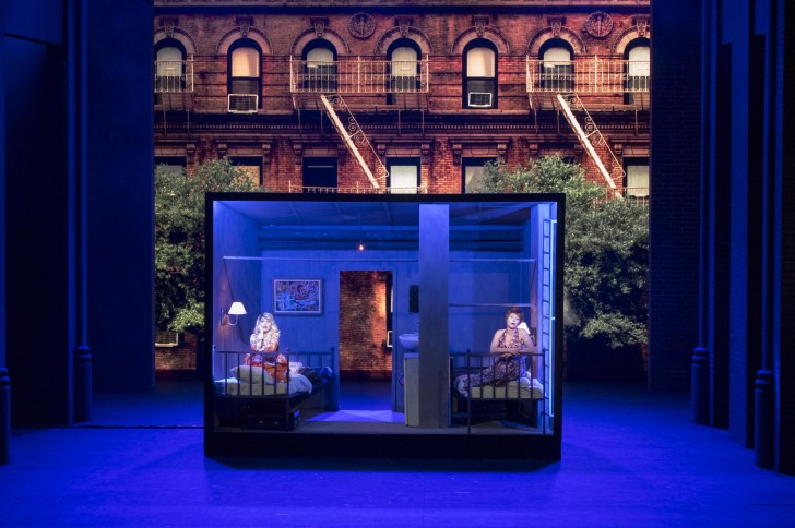 Olivier Bénézech, déjà très à l'aise avec Sondheim sur les mêmes planches, franchit un stade esthétique avec Bernstein. Extrêmement bien entouré (Alyssa Landry, indiscutable Miss Lowett dans Sweeney Todd, ayant même collaboré à la mise en scène), il déroule le cordeau d'un spectacle vraiment enthousiasmant. Visuellement, c'est une splendeur. Les vidéos de Gilles Papain, très documentées, apportent séduction et profondeur à l'intelligence d'un cadre de scène de brique rouge à l'intérieur duquel glisse un module, style chambre de poupées, destiné aux intérieurs. Le tout est sublimement éclairé par la grande poésie des lumières bleutées de Marc-Antoine Vellutini. Douze danseurs à la technique magnétique s'emparent de la chorégraphie de Johan Nus, artiste dont l'inspiration ne faiblit jamais. Les costumes inventifs de Frédéric Olivier habillent de mille couleurs une direction d'acteurs qui passe miraculeusement de la parole au chant. Dans la scène hilarante de la Conversation piece, surgissent les fantômes adulés des amants du second acte de Così fan tutte et de certain quatuor absurde de La Cantatrice chauve. Ce Wonderful Town est une fête dont l'apparente insouciance ne néglige pas de piquants rappels : ici une pancarte glissant un très contemporain : « It's not my president », là une vidéo enfonçant, pour les aveugles, le clou d'un Trump casquetté d'un « Make America great again ». Pour toute l'équipe réunie autour de Bénézech, la grandeur de l'Amérique se joue à l'évidence davantage dans ce communicatif brassage des cultures, des rythmes, des désirs. Car le spectacle toulonnais est aussi sexy que la partition, éloignée autant que faire se peut de toute frilosité, la Conga débridée façon Jean-Paul Gaultier de « marins » en rut autour de Ruth en fin d'acte I n'étant qu'un exemple d'un rappel hédoniste pour tous.