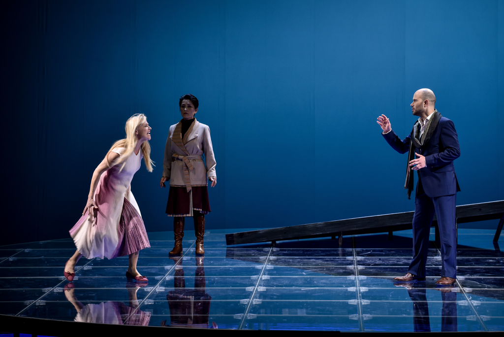 Hambourg. Staatsoper. 2-II-2018. Toshio Hosokawa (né en 1955) : Stilles Meer (Mer calme), opéra sur un livret de Oriza Hirata, traduit en allemand par Dorothea Gasztner et adapté par Hannah Dübgen. Mise en scène : Oriza Hirata. Décor : Itaru Sugiyama. Costumes : Aya Masakane. Avec : Mojca Erdmann, Claudia ; Mihoko Fujimura, Haruko ; Bejun Mehta, Stephan ; et Johann Kristinsson, Alin Anca, Sienna Schumann. Orchestre Philharmonique de Hambourg, direction : Kent Nagano.