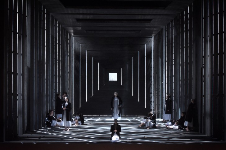 2013 fut une année importante pour Olivier Py. Claude à Lyon, Il Trovatore à Munich, puis un vibrant Alceste à la craie à Garnier, une rutilante Aïda en forme de leçon d'histoire à Bastille, et enfin Dialogues des carmélites au Théâtre des Champs-Élysées. Le prolifique metteur en scène n'a vraiment pas manqué son rendez-vous avec cet opéra que Poulenc semblait avoir écrit pour lui. L'œuvre questionne, au sortir de la Seconde Guerre mondiale, l'état des lieux spirituel d'un monde qui venait d'entériner la mort de Dieu à Auschwitz. Dialogues des carmélites, pari fou devenu un des plus beaux opéras jamais écrits, est aussi celui où l'on écoute chaque mot énoncé, où, prolongeant l'aveu de Poulenc (« Blanche, c'est moi »), l'on peut s'identifier à chacun des protagonistes. Bernanos, dans son adaptation scénaristique de la nouvelle de Gertrud von Le Fort, La dernière à l'échafaud, évoque autant la peur de la Mort que celle de la Vie (« La peur est peut-être une maladie », interroge Blanche). Poulenc met en musique cette trame, inédite à l'opéra car « sans intrigue amoureuse » (ainsi qu'il s'en effraya d'abord). Py met en image. Bernanos, Poulenc, Py : la communion de pensée est un euphémisme. Py, seul désormais à nous être contemporain, va plus loin encore, et fait imprimer dans le programme le perturbant constat (fil rouge de son impressionnante Salomé pour l'Opéra du Rhin) de Dietrich Bonhoeffer : « Le Dieu qui est avec nous est celui qui nous abandonne. »