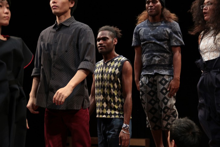 Maori, samoan, cook, kanak et japonais, les peuples du Pacifique sont aussi variés que dispersés. À travers des ateliers in situ démarrés en 2009, la chorégraphe française Régine Chopinot a tenté de les réunir dans un spectacle composite rythmé par les percussions de Francisco Escalante Vargas. Physiques imposants des Maoris et des Kanaks portant jupe et turban, allure frêle des Japonais, voix grave d'une chanteuse venue des îles, la cohabitation de ces différences produit une mosaïque d'impressions et de couleurs vocales.