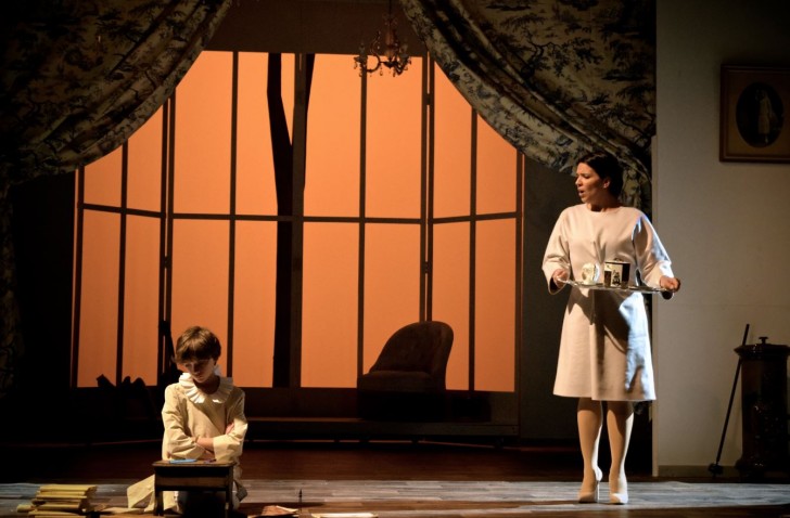 Le regard d'Olivier Dhénin offre une simplicité poétique qui joue entre le rêve et la réalité. Les objets ne s'animent pas, ce sont (seulement ?) leur âme que matérialise les interprètes, seuls quelques détails de leurs costumes de coupe contemporaine les liant à leur fonction initiale : une horloge ou des ailes de libellule sur le ventre, une théière ou une tasse de thé sur la tête, des ailes de chauve-souris sous les manches, des blousons de cuir marron où sont accrochés des queues d'écureuils… Le chaleureux salon s'ouvre sur une nuit enneigée dont la porte d'entrée est l'armoire, et se décompose au fur et à mesure afin de faire éclore un jardin défiant toutes les lois de l'apesanteur. Cette approche intimiste se retrouve également en fosse avec la réduction pour piano à quatre mains, flûte et violoncelle de Didier Puntos déjà présentée au Théâtre de l'Athénée en 2007 et au festival d'Aix-en-Provence en 2012. Cette version de chambre mélange judicieusement trois modes de jeux instrumentaux bien distincts pour retranscrire l'éloquence orchestrale de la partition et la magie d'écriture grâce à des combinaisons sonores singulières : le souffle avec la flûte, le picolo, la flûte en sol et la flûte à coulisse de Corentin Garac, l'archet avec le violoncelle de Matthieu Lecoq, et le clavier (Emmanuel Christien et Michaël Guido) qui créé à lui seul cette impression de masses et de volumes.
