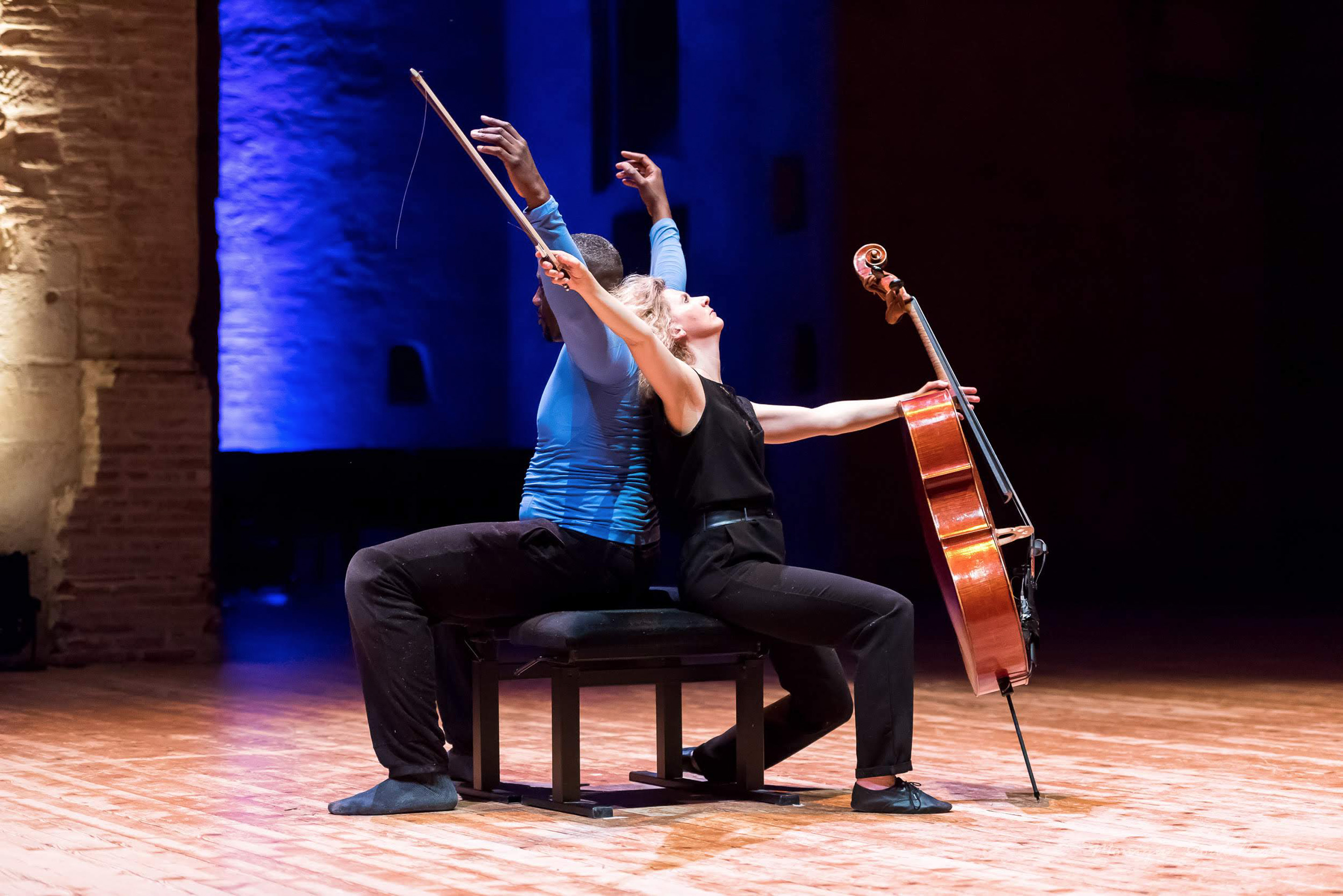 La violoncelliste Ophélie Gaillard ouvre le bal d'une façon originale. Seule en première partie, elle met en perspective le célèbre Prélude de la Deuxième Suite et la Troisième Suite de Bach avec une pièce de Philippe Hersant Les Ombres de Giverny, qui dialogue plus avec Bach qu'avec les impressionnistes français. Cette passacaille inspirée par Sebastien et les compositeurs français du grand siècle, également structurée pour la danse, s'insère naturellement entre les deux piliers bachiens, sorte d'abécédaire du violoncelle. Mais la surprise vient dans la seconde partie avec l'entrée du danseur Ibrahim Sissoko. Sur des accents de Bach, du Chant des oiseaux de Pablo Casals ou de Carmen, il fait beaucoup plus qu'évoluer autour d'Ophélie Gaillard. Il joue avec elle, devenant à son tour instrument, chantant et se lançant avec son compère dans une incroyable chorégraphie très élaborée où le violoncelle devient lui même le personnage central de leurs évolutions. Une merveille qui enflamme le public de l'auditorium Saint-Pierre des Cuisines. Et il vaut bien cet hommage, ce fameux instrument de Francesco Goffriler, qui avait été volé à Ophélie Gaillard, il y a quelques mois puis restitué 48 heures plus tard à la suite d'une mobilisation sans précédent des médias et des réseaux sociaux.
