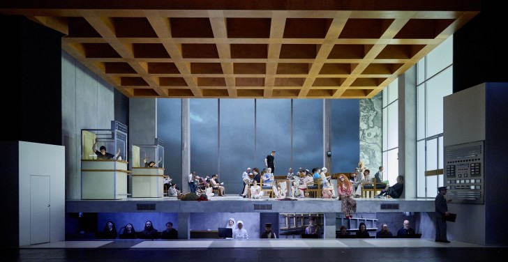Hélas, la mise en scène de Jossi Wieler en reste au niveau prosaïque du livret, dans un décor pour une fois un peu passe-partout d'Anna Viebrock. Même le plaisir d'admirer André Jung, un des plus grands acteurs du théâtre allemand, n'aide pas vraiment à faire passer le temps, parce que le rôle de ce Johannes n'est pas à la hauteur de son talent – et cet ennui pousse d'ailleurs plusieurs dizaines de spectateurs à perturber la représentation à force de départs anticipés fort peu discrets. L'impression de sous-emploi est également présente avec l'excellent ténor Matthias Klink, mais c'est surtout l'interprète du rôle de Maria qui laisse perplexe. Difficile de juger ce qui revient à l'écriture d'un rôle sans substance dramatique et sans guère de personnalité musicale et ce qui revient à l'interprète, mais le résultat est là : au lieu d'être la petite parcelle d'humanité que rencontre Johannes dans son parcours, comme l'œuvre semble vouloir le suggérer, Julia Bauer reste ici complètement transparente, et l'émotion que devrait susciter sa longue cantilène a bocca chiusa sur le corps de Johannes mort est remplacée par le bruit des pas des spectateurs se dirigeant vers la sortie, à ce moment précis. Une soirée qui laisse perplexe et laisse penser que le théâtre n'est pas un lieu propice pour la musique de Mark André.