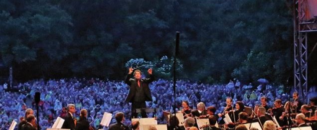 Halle. Galgenbergschlucht. 10-VI-2018. Wolgand Amadeus Mozart (1756-1791) : Ouverture et choeur « Singtndem großen Bassa Lieder (Die Entführung aus dem Serail, KV 384), Air de Zaide « Ruhe sanft, mein holdes Leben (Zaide, KV 344) ; Gioachino Rossini (1792-1868) : Ouverture et chœur « Ho un gran peso sulla testa » (L’italiana in Algeri) ; Georg Friedrich Haendel (1685-1759) : Chœur « Awake the trumpet’s lofty sound » et air de Philisterin « Ye men of Gaza », chœur « O first created beam » et air « Honour and arm », chœur « To song and dance », chœur « Fix’d in His everlasting seat » (Samson, HWV 57), chœur « Halleluja » (The Messiah HWV 56), La Réjouissance : Allegro, Bourrée, Ouverture (Music for the Royal Fireworks HWV 351) ; Camille Saint-Saëns (1835-1921) : Bacchanale (Samson et Dalila op. 47) ; Jean-Philippe Rameau (1683-1764) : Danse du Grand Calumet de la Paix, duo Zima/Adorio et chœur « Forêts paisibles » (Les Indes Galantes RCT 44) ; Edward William Elgar (1857-1934) : March of the Mogul Emperors (The Crown of India op. 66). Miriam Sabba, soprano. Dominik Köninger, baryton. Marktkantorei Halle, Robert-Franz-Singakademie Halle, Staatstkapelle Halle, direction musicale : Jan Michael Horstmann