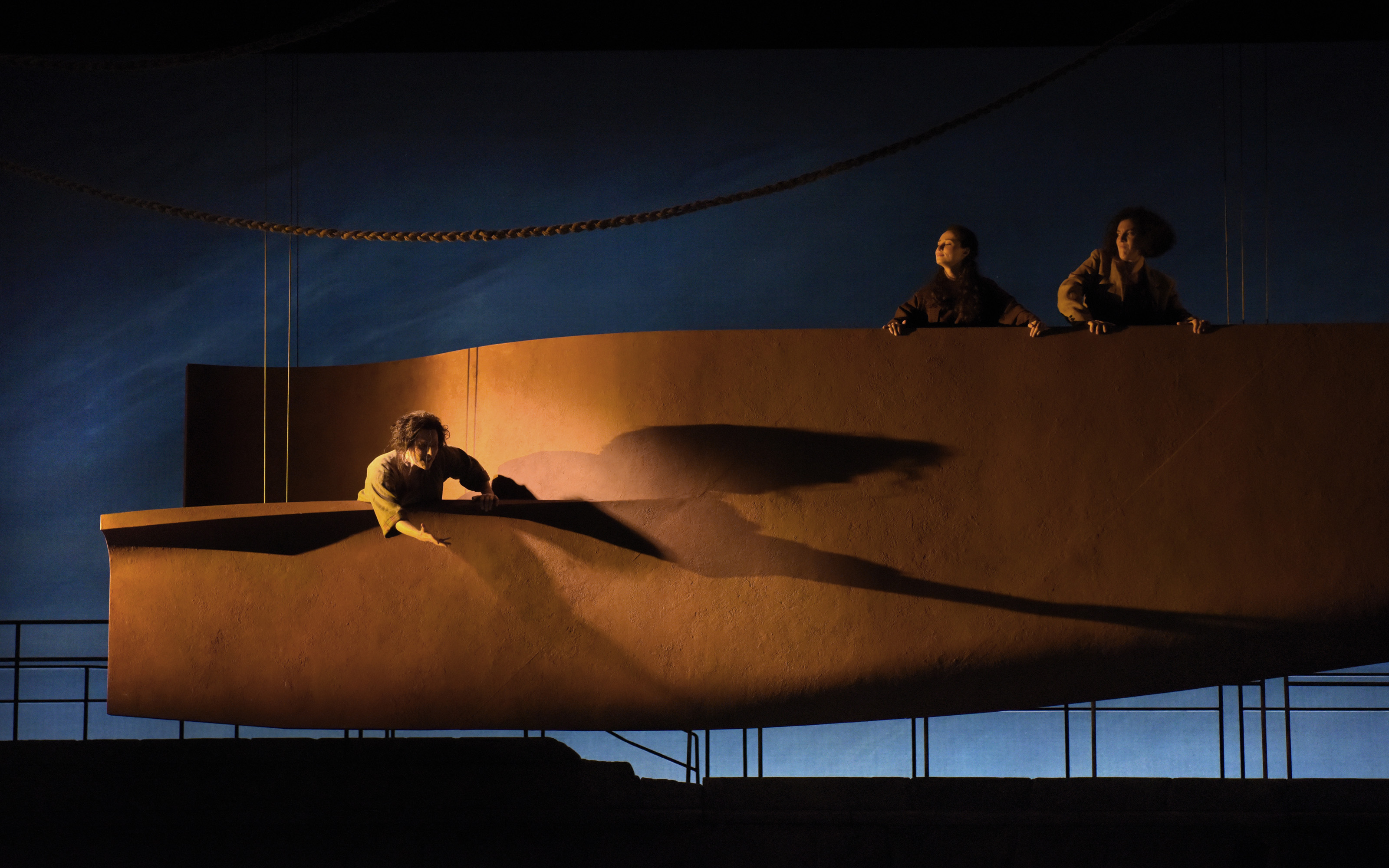 Mais le grand frisson, c'est Lucile Richardot qui nous l'offre lorsqu'elle arrive sur sa barque telle une déesse ex machina, accompagnée par les deux autres sorcières, excellentes Fleur Barron et Majdouline Zerari. La voix chaude et ample de l'interprète associée à son extraordinaire présence scénique font de ce moment le tournant de l'opéra, et cette qualité ne se dément pas jusqu'à la fin. Autre intervention remarquée : celle de Peter Kirk dans le rôle du marin, au début de l'acte III, dont l'apparition trop fugitive est l'unique moment de comédie au cœur de la tragédie