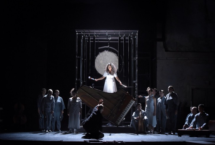 L'engagement des artistes à l'œuvre est probablement d'autant plus intense que la création de Seven stones était prête pour l'édition 2017. Le Chœur Accentus/axe 21 et les solistes principaux (merveilleuses Anne-Emmanuelle Davy et Shigeko Hata), individualisés par les camaïeux de bleus-gris de leurs costumes spécifiques, sont d'une beauté et d'une excellence qui ne sent jamais l'effort, même si on devine combien cette alchimie sur le fil est à réinventer chaque soir. L'émotion est plus que palpable entre Landy Andriamboavonjy et Nicolas Simeha, impressionnant couple vedette, notamment lors du duo final, une sorte de Pur ti miro qui aurait une suite, et qui glisse de la plus touchante sensualité à l'effroi du meurtre. Léo Warynski dirige de la fosse, du plateau, de la coulisse, avec une discrétion qui confine à l'invisibilité, un effacement qui laisse à penser que les seize artistes réunis devant un public fervent, en plus d'être des virtuoses de leur art, sont totalement autonomes. Seven stones est un prégnant voyage au cœur de l'humain.