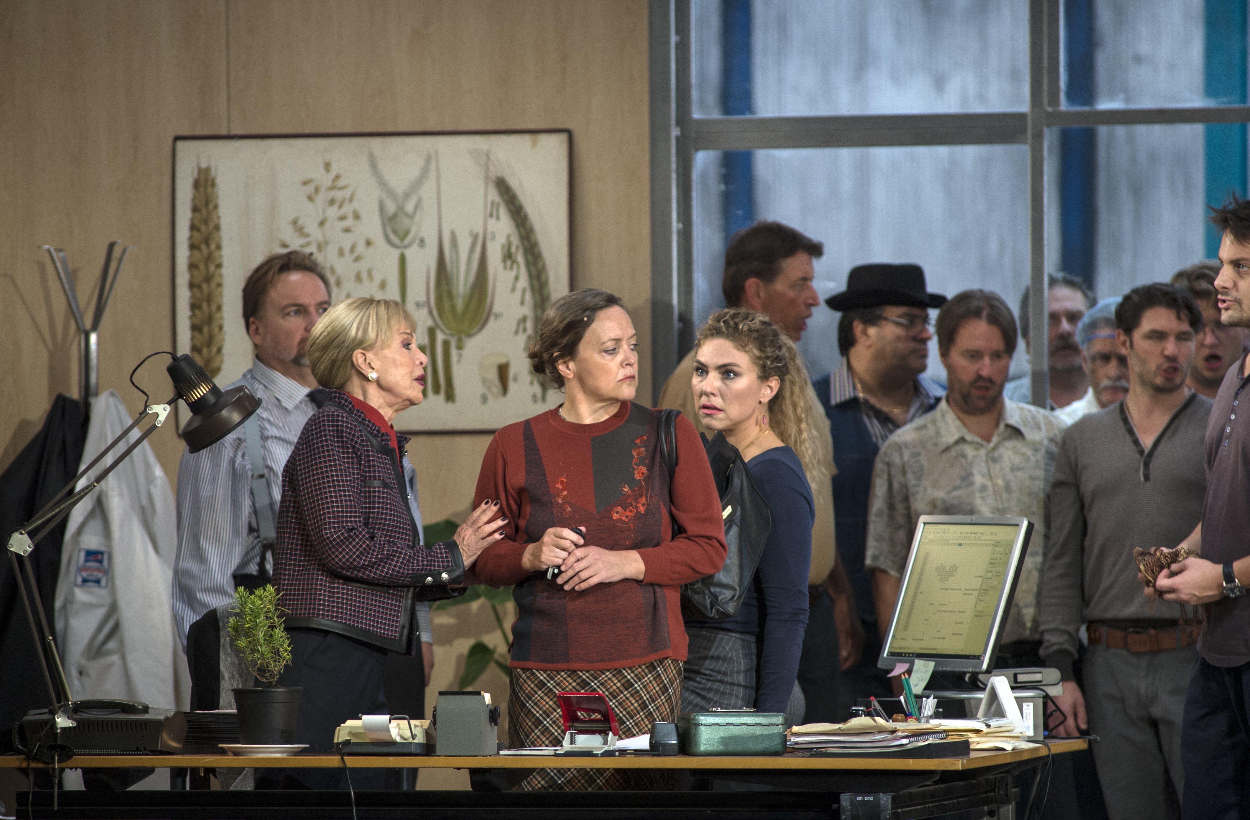 La pièce de Gabriela Preissová faisait de la belle-mère le rôle principal ; les coupes de Janáček puis le choix, influencé par Max Brod, de nommer l'opéra du nom de la belle-fille, ont relégué au second rang la Kostelnička. Pourtant, tenue par une Evelyn Herlitzius qui n'avait pas convaincu par le chant éreinté de sa Makropoulos récemment pour Berlin et inquiète ici à ses deux premières phrases, la Sacristine impacte dès l'air du premier acte. Elle fascine ensuite au II avant, puis après s'être débarrassée du nourrisson, et enfin par sa force d'implication physique et vocale lorsqu'elle avoue son crime, avant que Jenůfa ne reprenne la première place au finale de l'opéra. Celui-ci est évidemment joué dans la version d'origine par un Netopil là encore passionnant par sa capacité à utiliser habilement l'écriture cyclique du génial compositeur.