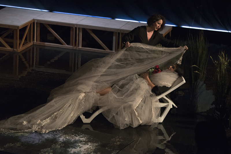 La dramaturgie élaborée par Simon Hatab et la conception musicale, supervisée par les deux pianistes Benjamin Laurent et Federico Tibone permettent de voir s'entrecroiser les amants du Songe d'une nuit d'été (Britten), Hamlet (Ambroise Thomas) et Ophélie (lieder de Richard Strauss), Lear (Reimann) ou Desdémone (Rossini) et même une Juliette dédoublée dans un jeu de miroir particulièrement réussi (Gounod et Bellini). C'est à souligner car tout n'est pas également réussi dans ce spectacle ambitieux qui, à trop vouloir faire le grand écart des univers (une forêt suggérée qui doit intégrer une baignoire, un transat et une table de maquillage), devient parfois un peu abscons. Toutefois, sa grande force est de parvenir à bien mettre en valeur les talents personnels des chanteurs de l'Académie et de juxtaposer tous les répertoires, ce qui apporte une grande richesse à la démarche.
