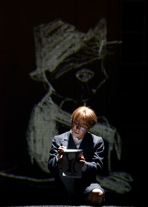Rodelinda©Jean-Pierre-Maurin2018__2Présentée la première fois il y a deux ans au Teatro Real de Madrid, la mise en scène de aborde le drame de Rodelinda sous le regard de son fils Flavio, un rôle qui n'a pas à chanter une seule note mais qui marque constamment l'intrigue, ses tensions et son déroulement. En noir et blanc, en cohérence évidente avec les dessins exécutés par l'enfant avec un simple crayon de papier sur un carnet et parfois projetés sur la façade face au public, le manoir devient maison de poupée et les protagonistes des personnages aux visages enfantins disproportionnés hantant le jeune garçon. L'acteur Fabián Augusto Gómez Bohórquez est continuellement présent, simple observateur ou acteur du drame dont son personnage est la victime. Un point de vue aussi pertinent qu'esthétique au regard de la qualité de l'unique décor sur plateau tournant et des costumes XIXe de .