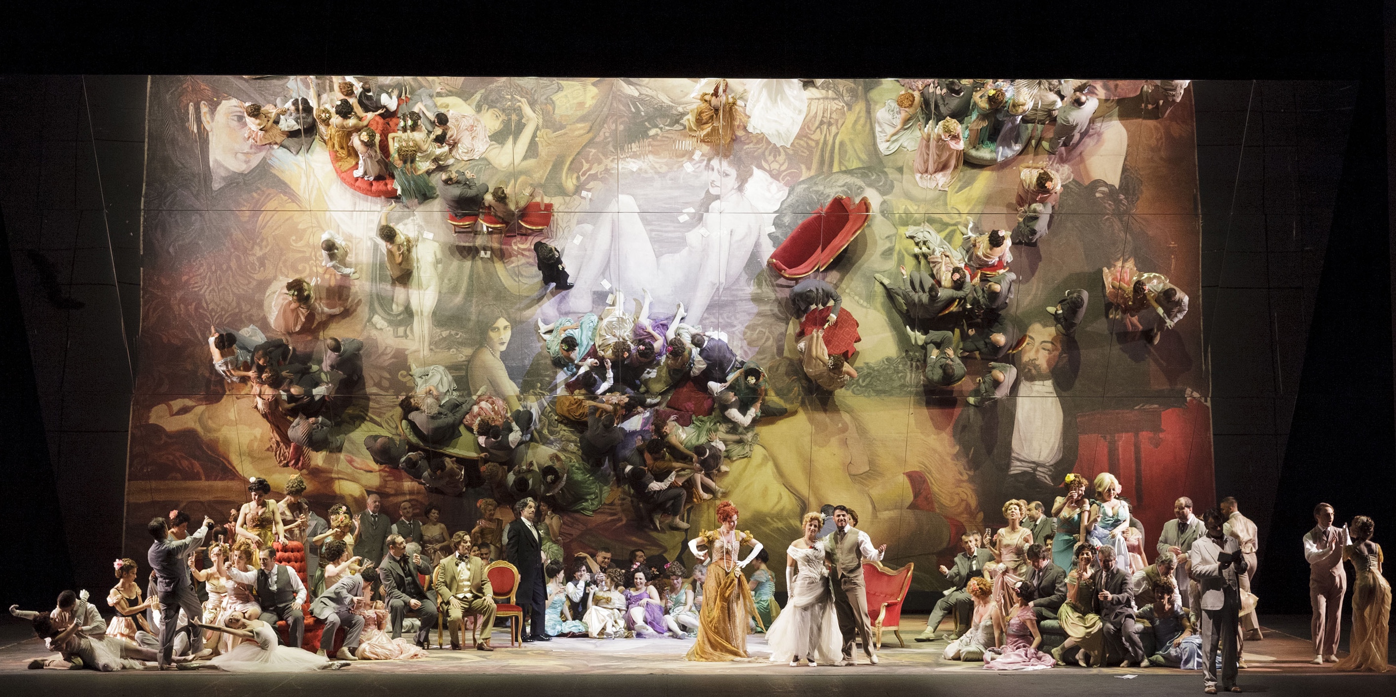 Avec La Traviata, on touche à l'essence même de l'humain. L'amour, la mort. Le drame de Violetta Valéry s'énonce donc au-delà de notes bien chantées et de mots bien articulés. Malheureusement cette humanité fait défaut dans la direction d'acteurs de Henning Brockhaus, au détriment de l'émotion profonde qu'on ressent devant le drame. À trop vouloir en faire, le metteur en scène allemand parasite l'essence de l'ouvrage. Et la première à en pâtir est la protagoniste du rôle-titre. Ainsi, dans le premier acte, l'intensité amoureuse du duo Alfredo-Violetta est-elle perturbée par de lascifs et inutiles danseurs tournant autour des deux amants ; au même titre qu'on casse l'esprit de l'œuvre du compositeur en montrant les accessoiristes repliant interminablement des éléments de décors – puisque c'est semble-t-il devenu la mode de montrer ceux qui actent en coulisses quand bien même ils ne font pas partie de l'intrigue.
