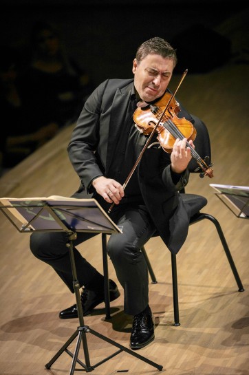 Le concert débute par deux octuors pour cordes, le premier de Chostakovitch, le second de Mendelssohn, permettant d'apprécier une homogénéité sonore étonnante pour des groupes de musiciens venants d'horizons culturels très éloignés les uns des autres. La diversité des couleurs et des rythmes de l'Octuor pour cordes op. 20 de Chostakovitch charme d'entrée par le soin apporté à la précision du jeu de chacun. De l'ensemble extrêmement précis émergent toutefois quelques musiciens qui ne peuvent cacher leur exceptionnelle personnalité. On pense particulièrement à l'énergie du premier violon ukrainien Oleg Kaskiv et au sublime son du violoncelliste espagnol Pablo de Naverán. Dans l'Octuor en mi bémol majeur op. 20 de Mendelssohn, c'est le violon de Maxim Vengerov toujours aussi charmeur, chaud et profond qui mène l'ensemble avec une autorité bienveillante. Si le Prélude apparaît parfois trop léché et manquant un peu de vie, le Scherzo s'anime avec un meneur soudain beaucoup plus attentif à l'interprétation qu'il offre joyeuse et colorée.
