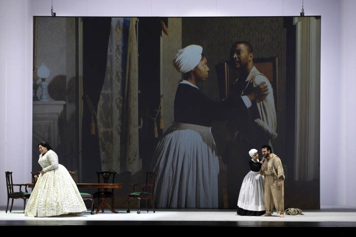 Epaulé par trois voix immenses, Tobias Kratzer fait du problématique opéra de Verdi un feuilleton haletant, revisitant sur un siècle et demi l'Histoire d'une grande puissance bien connue et notamment son rapport avec les noirs.