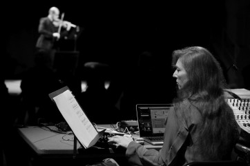 Il est tard (23h) mais le public est resté pour le second concert de la soirée. C'est la compositrice britannique Natasha Barrett qui est à la console, assurant la projection de ses trois pièces à l'affiche. Basée aujourd'hui à Oslo où elle enseigne l'électroacoustique, Natasha Barrett partage son activité de compositrice entre l'acousmatique, les pièces mixtes, les installations sonores et ses collaborations avec la danse et le théâtre. Glacial loop et Remote gate, les deux pièces acousmatiques qui débutent le concert sont extraits du cycle Microclimates et témoignent de sa proximité avec la nature et ses manifestations sonores. On est d'emblée séduit par la qualité du son projeté et la profondeur de l'espace qu'elle parvient à suggérer. Des qualités qui se retrouvent dans Dusk's Gait, pièce acousmatique toujours, où l'imaginaire sonore de Barrett est à l'œuvre. Sagittarius A* (2017) pour violon et électronique est la pièce centrale du concert (31 minutes), une longue trajectoire narrative sollicitant à la fois le temps réel et le temps différé. Lyonel Schmit est de nouveau sur le plateau, équipé d'un micro fiché sur son violon. Sagittarius A* est une pièce redoutable pour l'interprète, par la diversité de son écriture et les contrastes ménagés d'un « tableau » à l'autre. Elle laisse l'imagination de l'auditeur vagabonder librement même s'il est question de trou noir, de voyage dans la forêt norvégienne et du mystère qui en émane. Le collier et autre accessoire que Lyonel Schmit pose sur les cordes du violon pour en modifier la qualité de son est une touche indéniablement féminine apportée à cet itinéraire aussi mystérieux que mouvementé.