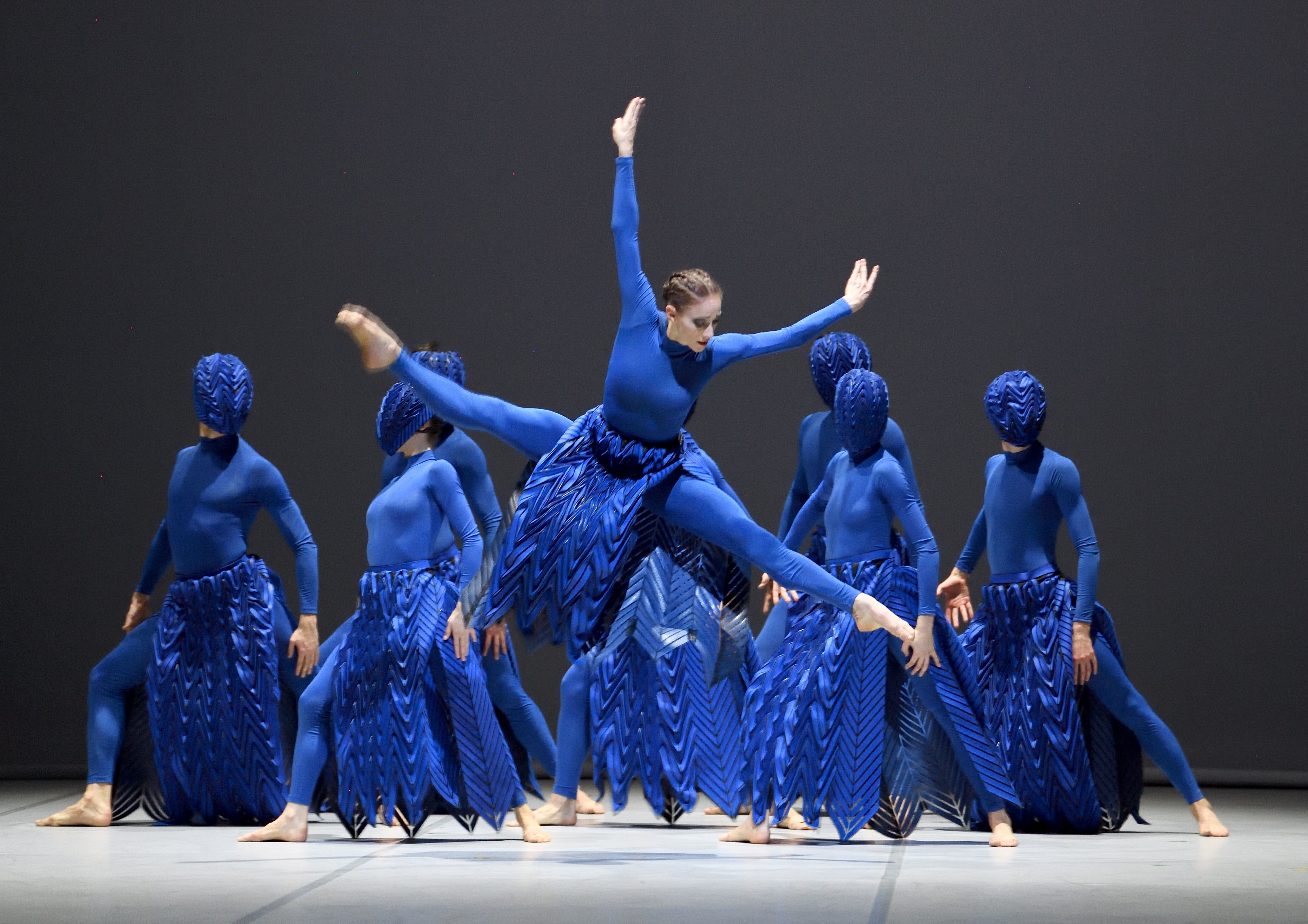 C'est seulement à la fin du programme que l'autre thème centenaire est abordé : REVOLT de Nanine Linning s'attache à la genèse des ruptures politiques, non pas tant comme un combat contre des forces d'oppression que comme la construction d'une force nouvelle, dans des lumières d'un bleu vif qui donnent à l'ensemble une unité forte. Sa pièce est résolument une pièce d'ensemble et s'attache au collectif plus qu'à des processus de distinction : l'écriture chorégraphique est souvent virtuose, particulièrement quand la masse n'est encore qu'une accumulation inorganique d'individus, avant qu'une unité d'action se constitue. La pièce tire sa force de sa cohérence, mais c'est aussi sa faiblesse : elle est la plus longue du programme (un peu plus d'une demi-heure), mais elle ne justifie pas entièrement cette durée. La cohérence dans la diversité des trois pièces de la soirée justifient en tout cas une expérience qui, à défaut d'être aussi radicale que l'année 1919, propose des éclairages stimulants sur la danse d'aujourd'hui.